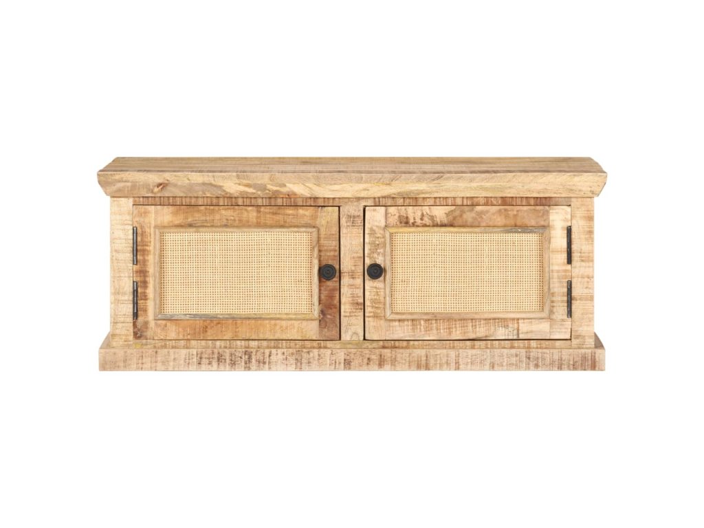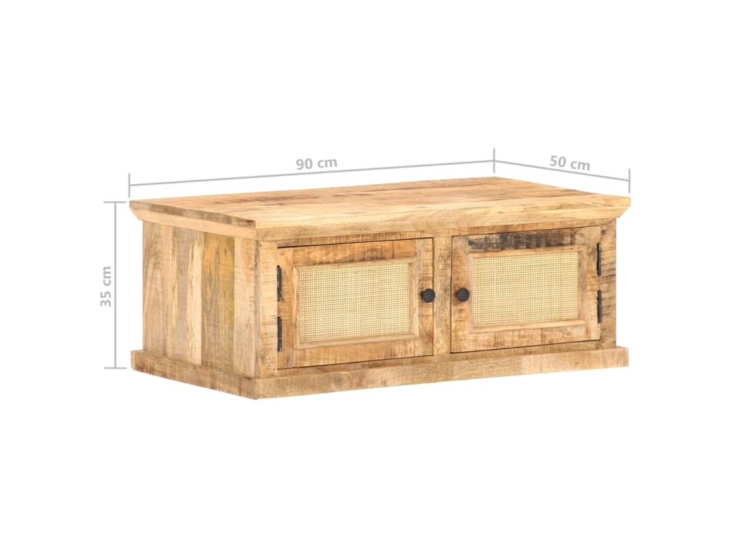 - Materiál: Masívne mangovníkové drevo s prírodnou povrchovou úpravou, prírodná trstina
