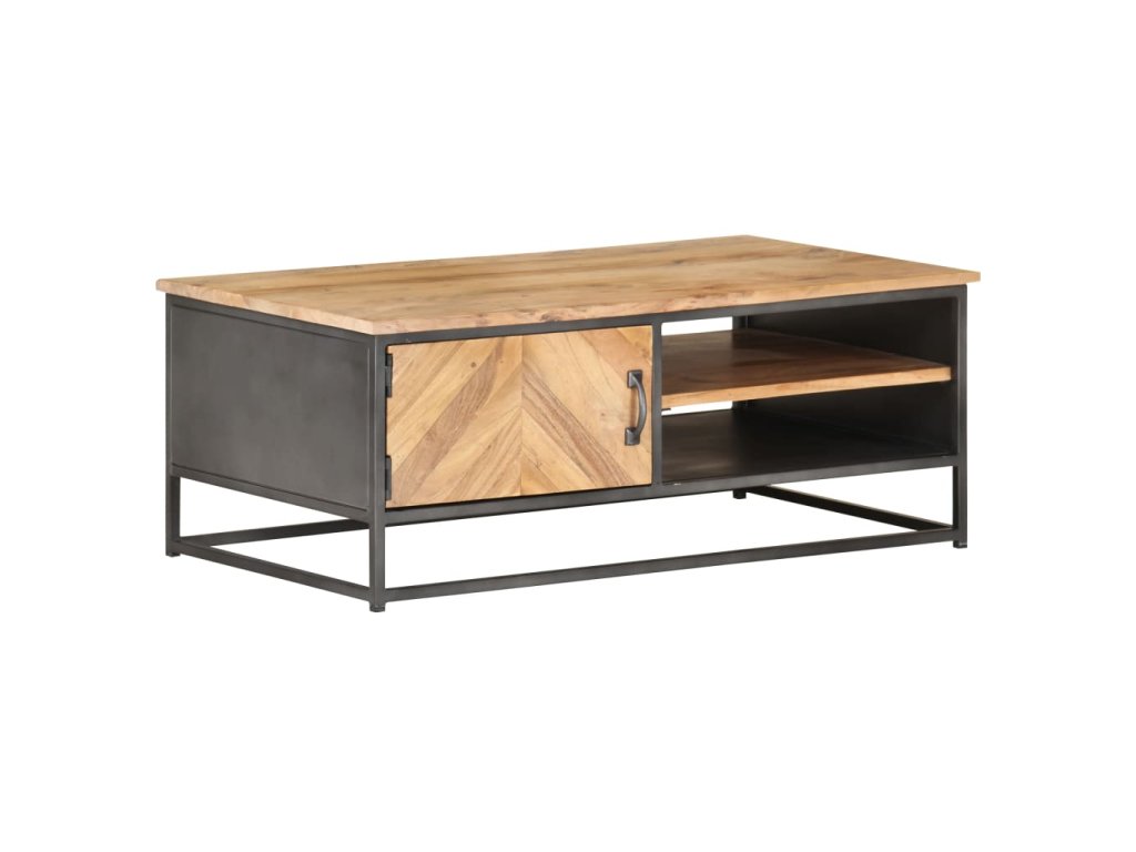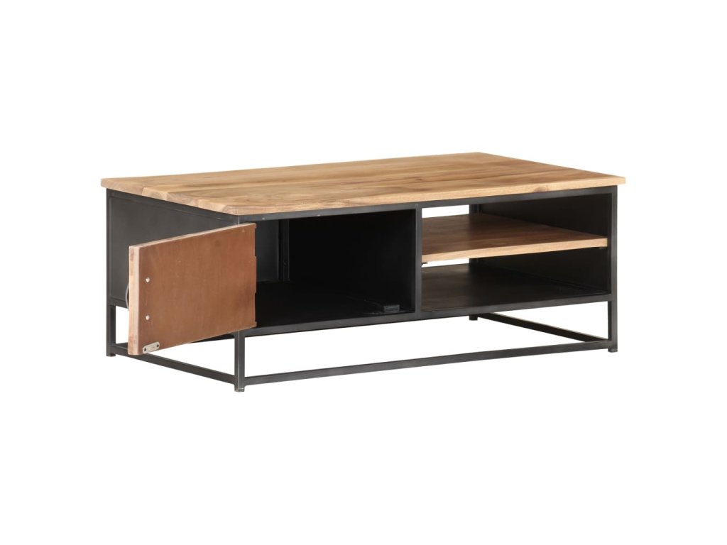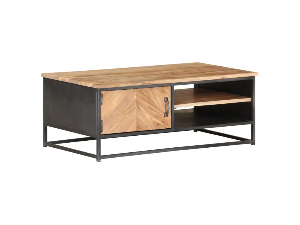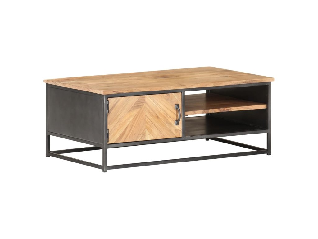 Tento stôl k pohovke je vyrobený z masívneho akáciového dreva, tvrdého dreva s hustou kresbou. Krásne navrhnutý stredový stôl je stabilný, odolný a púta pozornosť. Vďaka vynikajúcemu remeselnému spracovaniu a krásnej štruktúre dreva je každý kus mierne odlišný. Oceľové nohy s práškovaným nástrekom navyše zvyšujú jeho odolnosť. Stôl má 2 otvorené priehradky a 1 dvierka, takže si doň môžete uložiť svoje časopisy, knihy atď. Pevná stolová doska je ideálna aj na ukladanie nápojov, jedla a ozdôb.