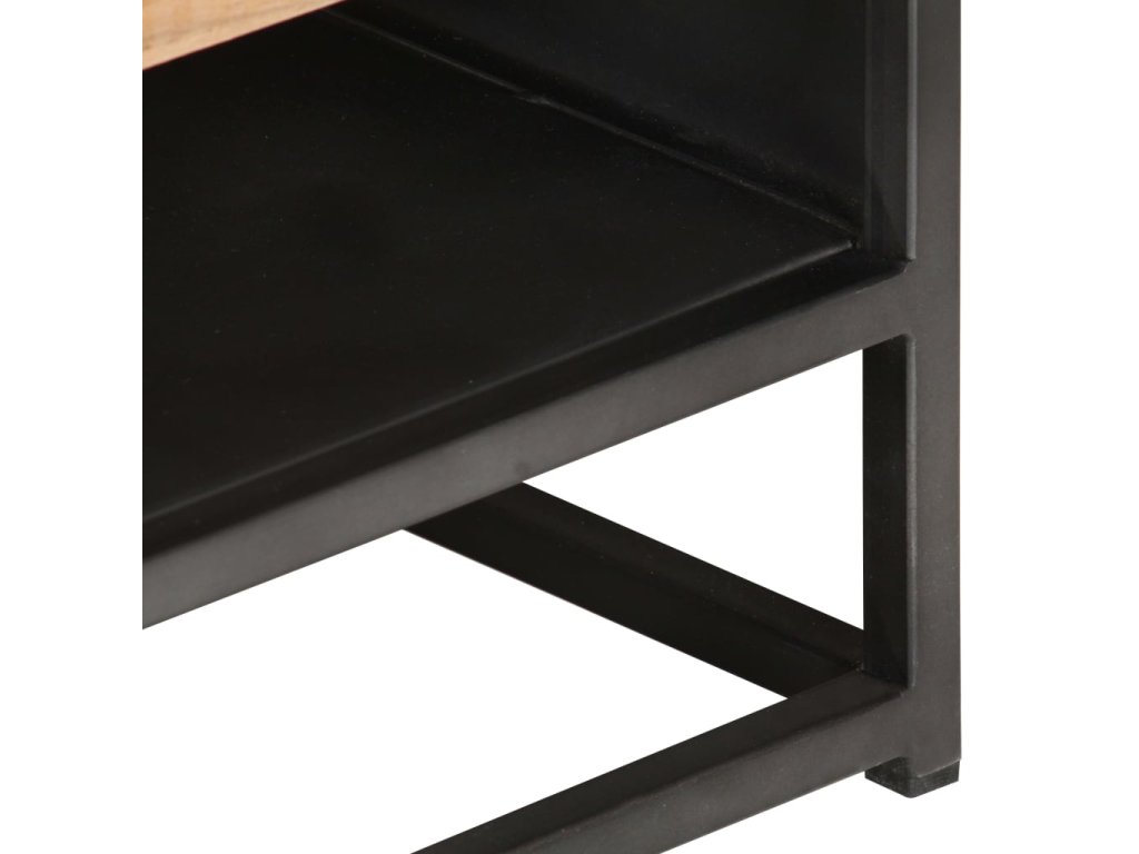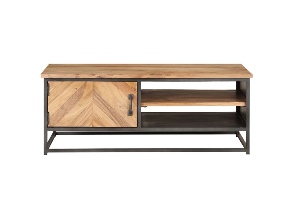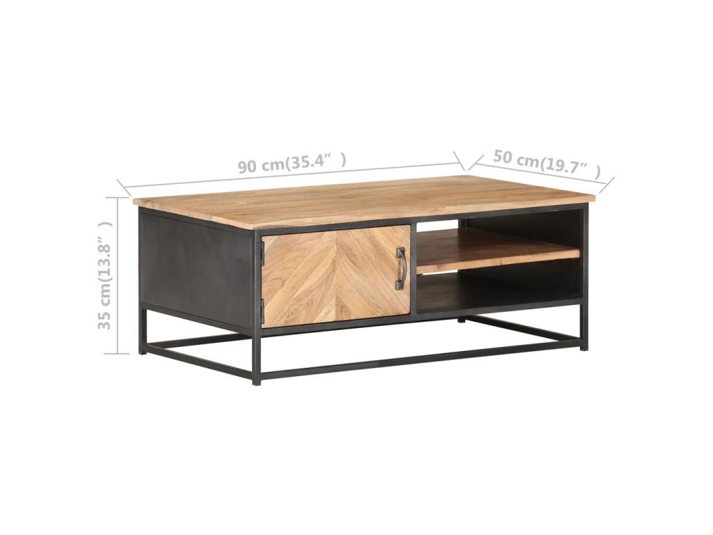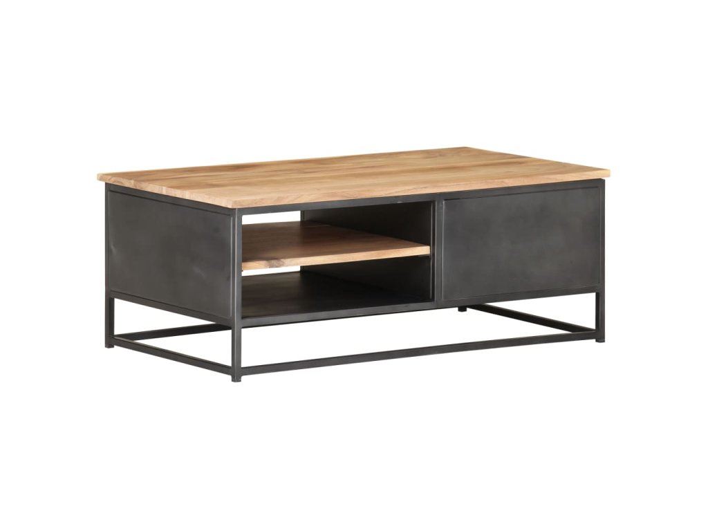 Tento stôl k pohovke je vyrobený z masívneho akáciového dreva, tvrdého dreva s hustou kresbou. Krásne navrhnutý stredový stôl je stabilný, odolný a púta pozornosť. Vďaka vynikajúcemu remeselnému spracovaniu a krásnej štruktúre dreva je každý kus mierne odlišný. Oceľové nohy s práškovaným nástrekom navyše zvyšujú jeho odolnosť. Stôl má 2 otvorené priehradky a 1 dvierka, takže si doň môžete uložiť svoje časopisy, knihy atď. Pevná stolová doska je ideálna aj na ukladanie nápojov, jedla a ozdôb.