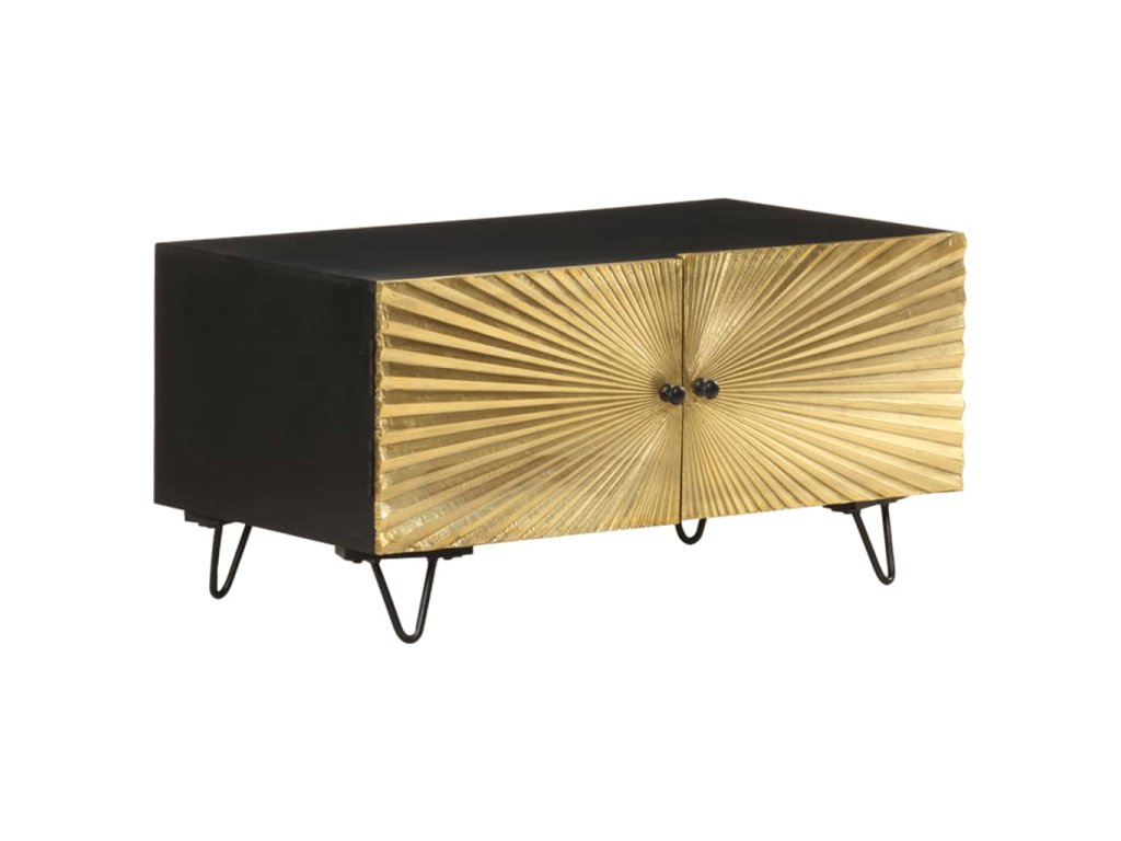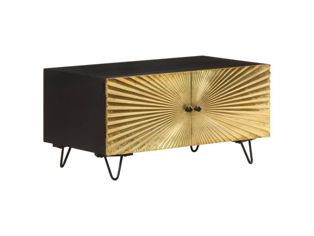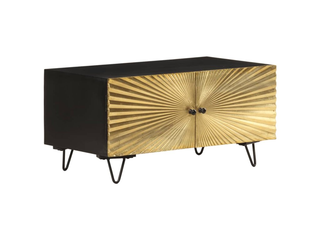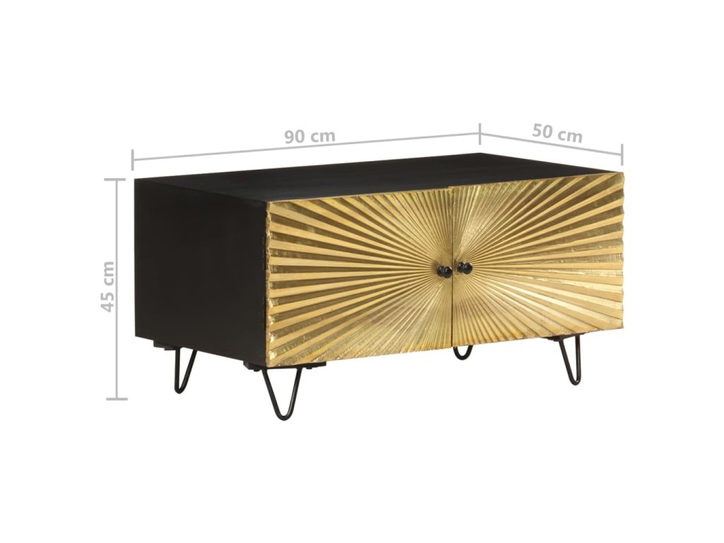 Stredový stolík je vyrobený z masívneho mangovníkového dreva, tropického tvrdého dreva s pevnosťou uniesť aj vyššiu hmotnosť. Odoláva aj opotrebovaniu časom, takže je stabilný a odolný. Pevná stolová doska je ideálna na umiestnenie nápojov, misiek s ovocím alebo ozdôb. Úložný priečinok poskytuje dostatok priestoru na uloženie vašich multimediálnych zariadení, kníh a rôznych iných predmetov. Predné dvierka sú dodávané s mosadzným kovovým obkladom, ktorý tejto skrinke dodáva luxusný šarm.