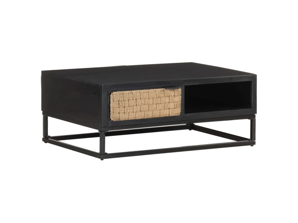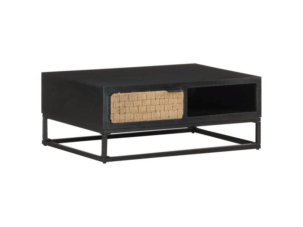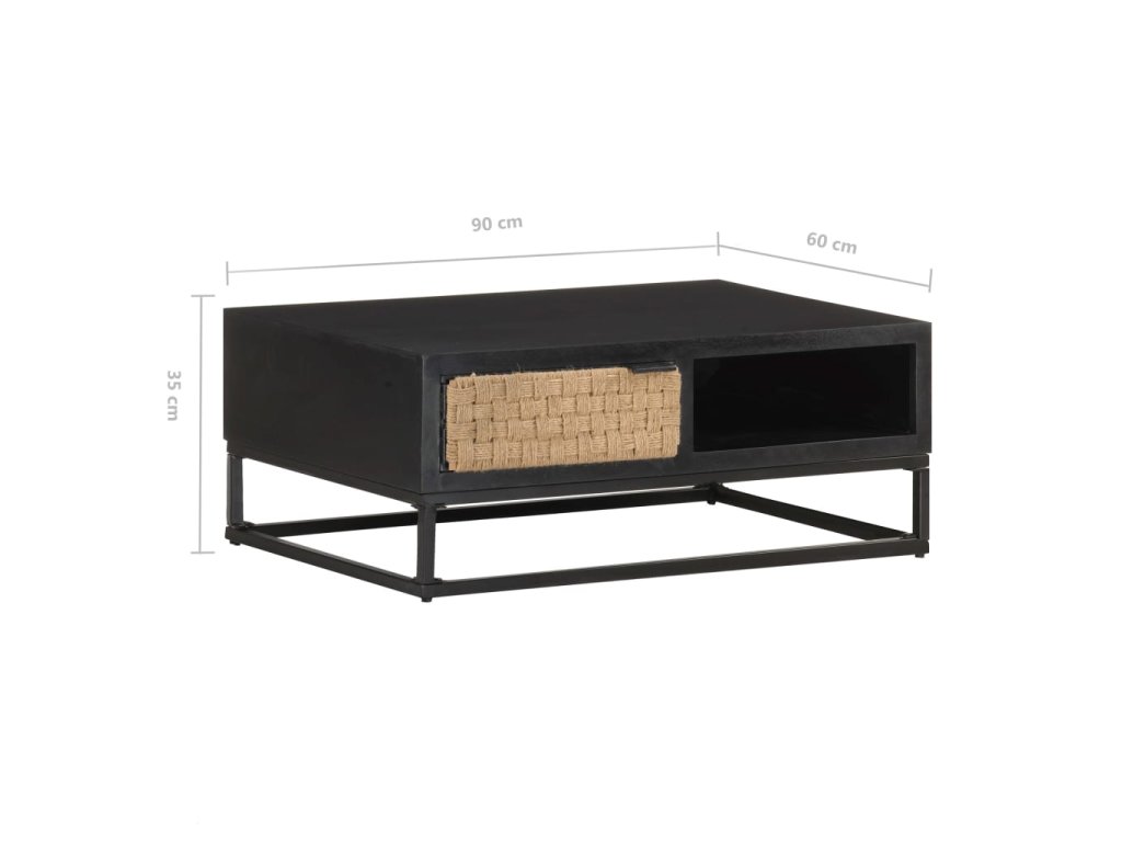 - Materiál: Masívne mangovníkové drevo s čiernou povrchovou úpravou, železo s čiernou práškovanou povrchovou úpravou, juta