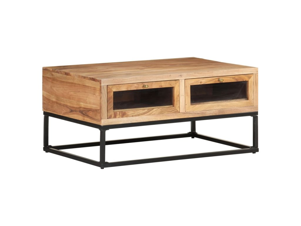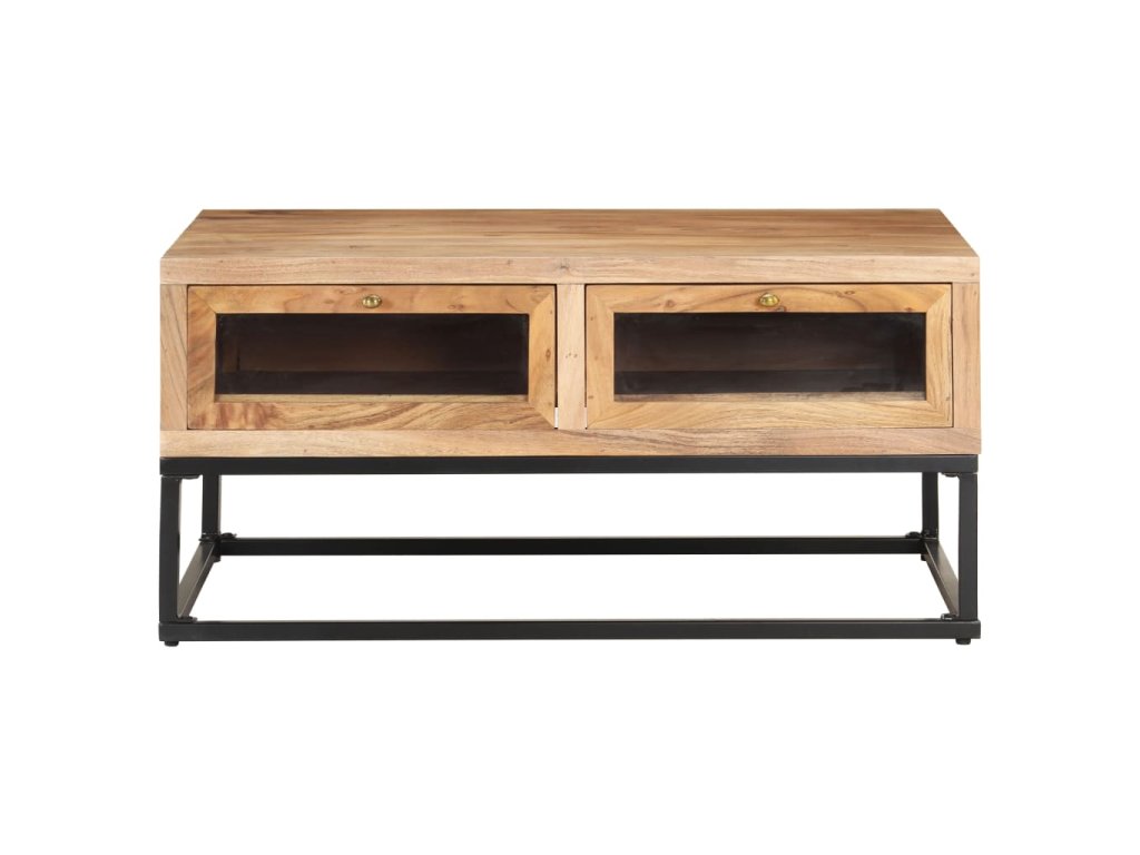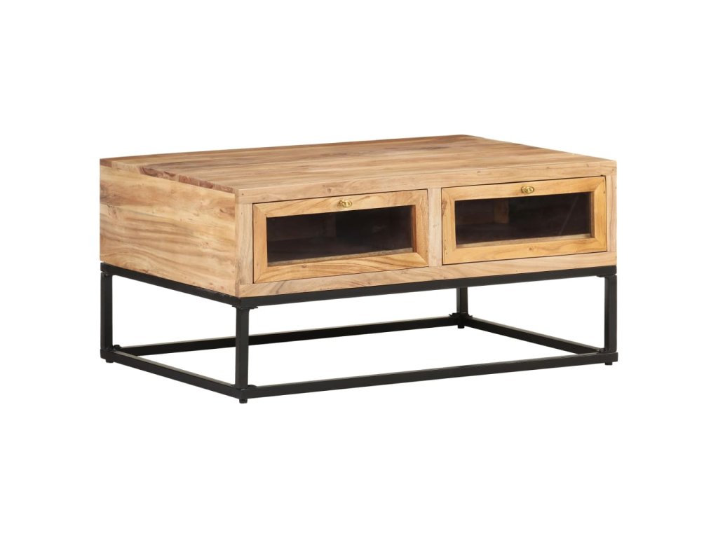 Gaučový stolík je vyrobený z masívneho akáciového dreva, vďaka čomu je pevný a stabilný. Vďaka vynikajúcemu remeselnému opracovaniu a krásnej textúre dreva je každý kus nábytku výnimočný a trochu odlišný od ostatných. Stredový stolík je vybavený 2 zásuvkami, takže si na neho môžete vystaviť alebo uložiť všetky predmety, ktoré chcete. Oceľová základňa navyše zvyšuje jeho pevnosť