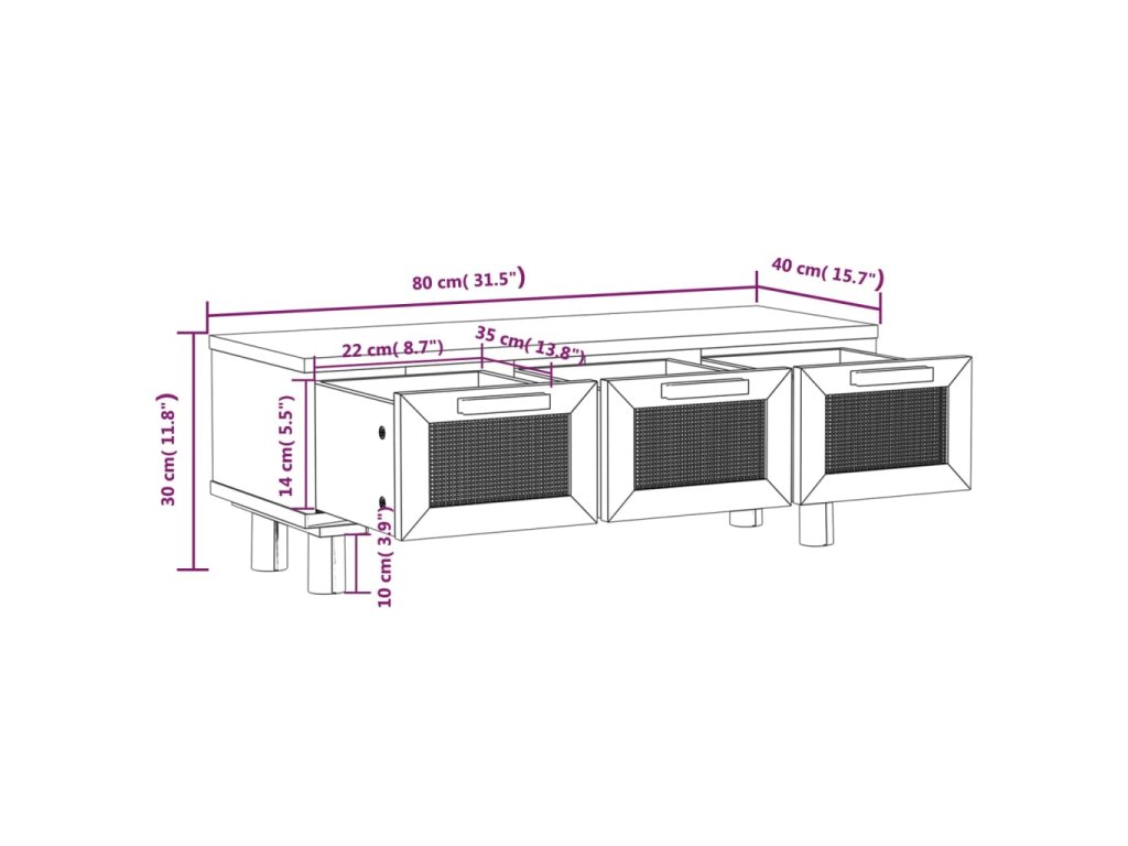 - Rozmery: 80 x 40 x 30 cm (Š x H x V)
