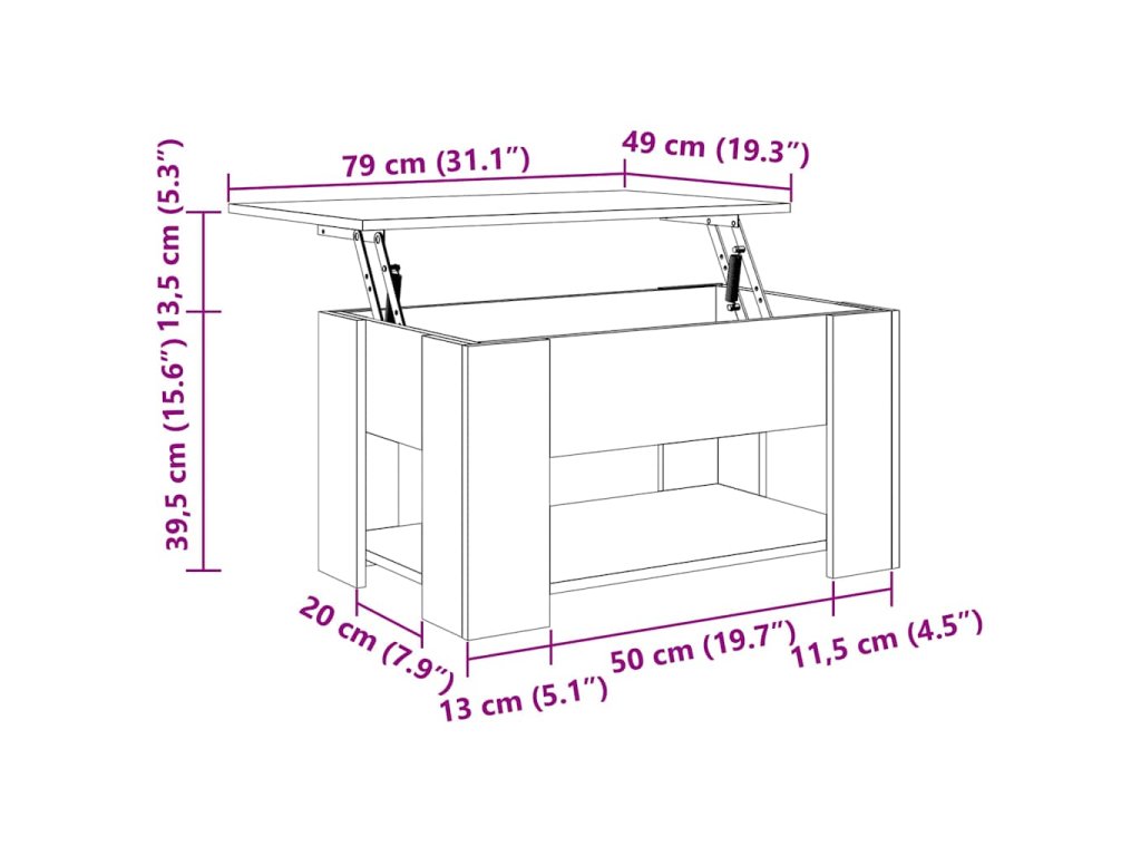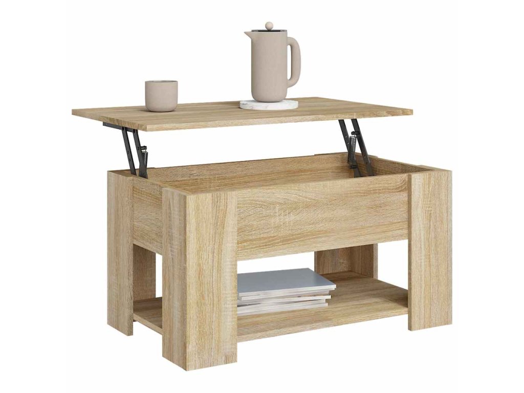 - Dizajn so zdvíhacou doskou: Stolovú dosku tohto stolíka môžete plynulo nadvihnúť do pohodlnej výšky a premeniť ju na miesto, kde môžete pracovať alebo stolovať.