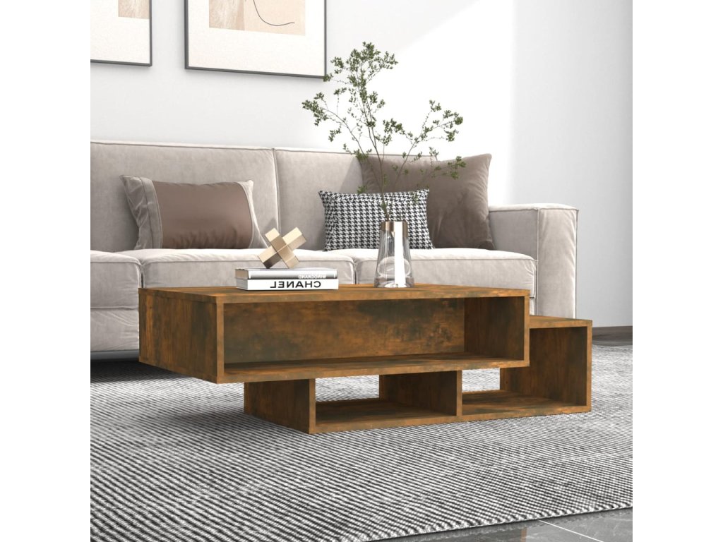 - Špeciálny dizajn: Konferenčný stolík s rovnými líniami má špeciálny charakter vďaka asymetrickým priehradkám.