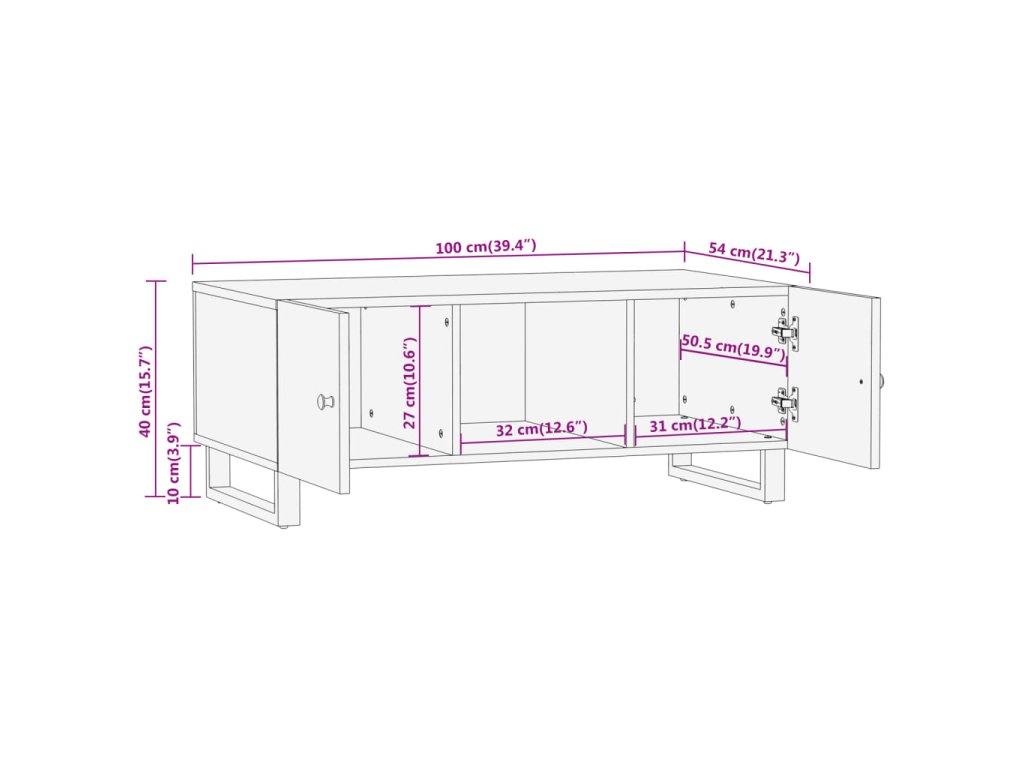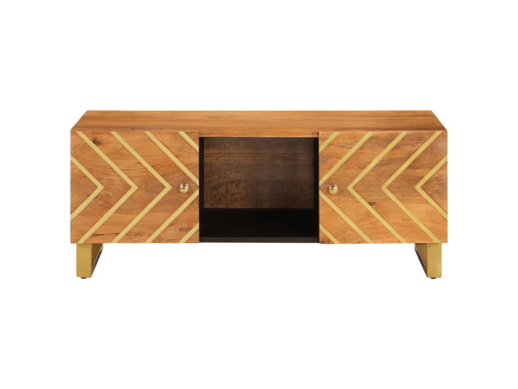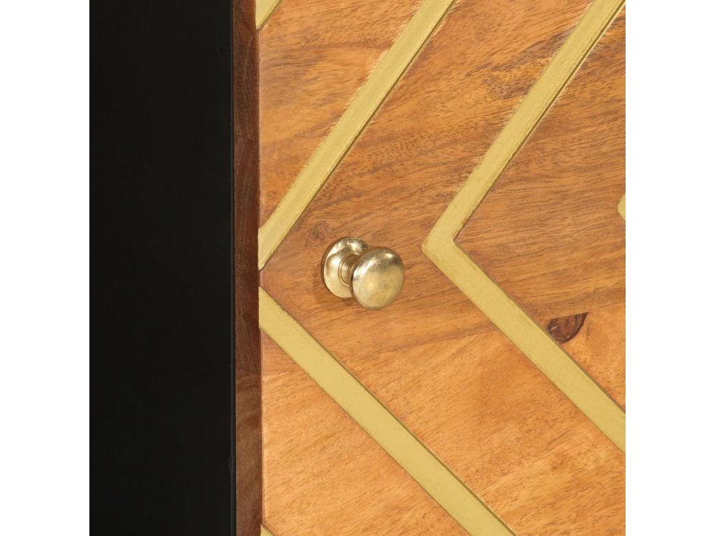 - Materiál: Mangovníkový masív s povrchovou úpravou v akáciovej farbe, MDF, železo