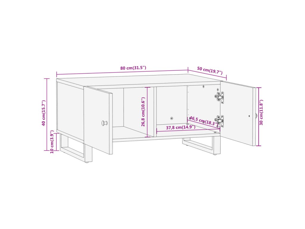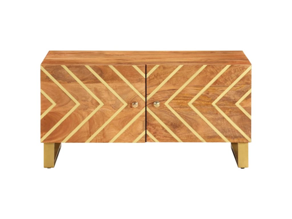 - Materiál: Mangovníkový masív s povrchovou úpravou v akáciovej farbe, MDF, železo