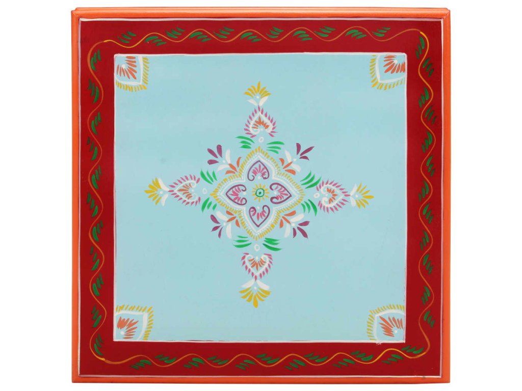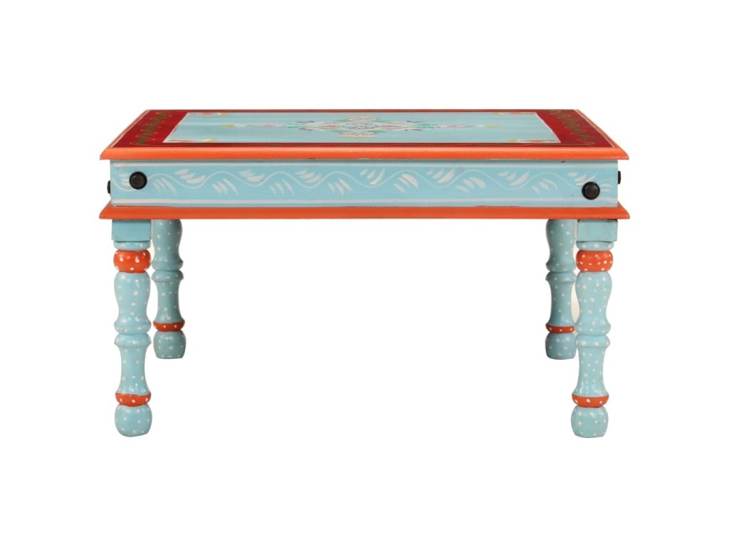 Tento drevený konferenčný stolík s bohatými ručne maľovanými dekoráciami bude pútavým doplnkom vašej obývačky.