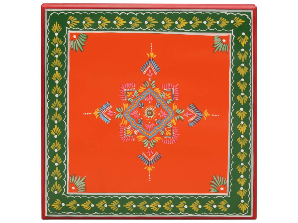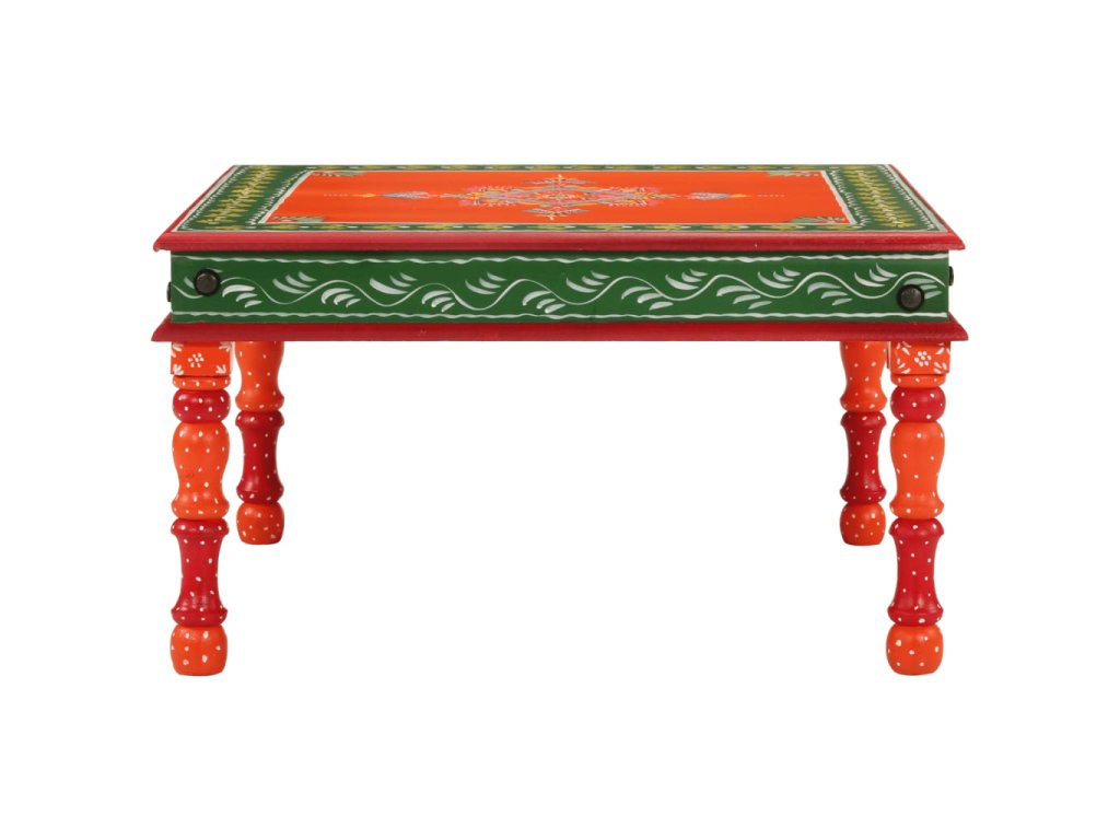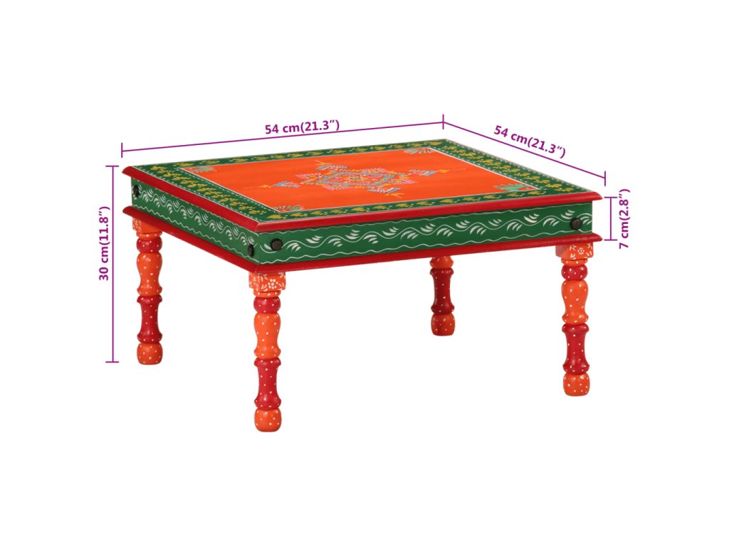 Tento drevený konferenčný stolík s bohatými ručne maľovanými dekoráciami bude pútavým doplnkom vašej obývačky.
