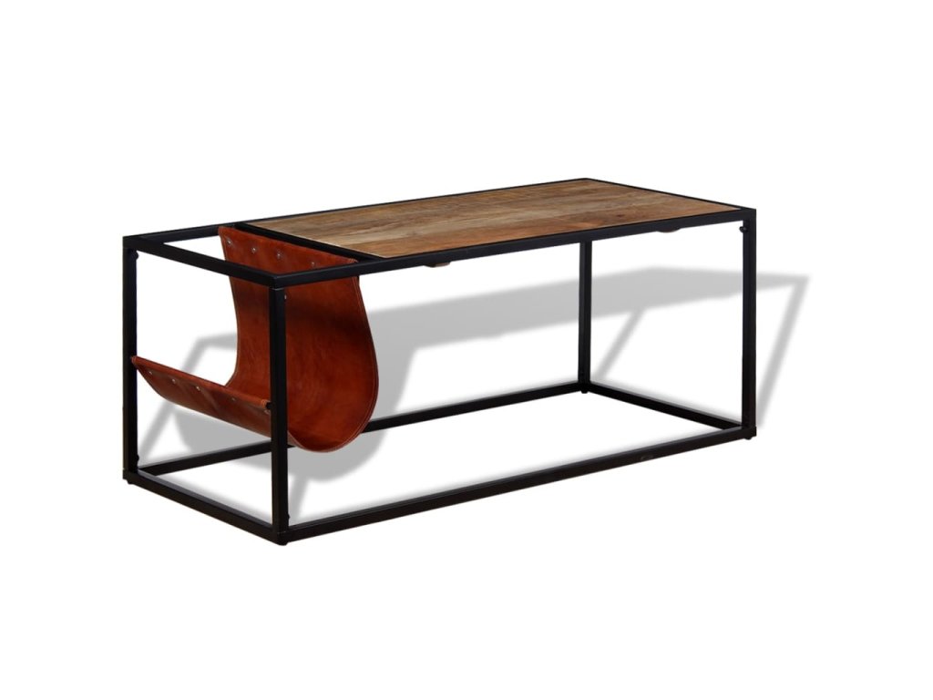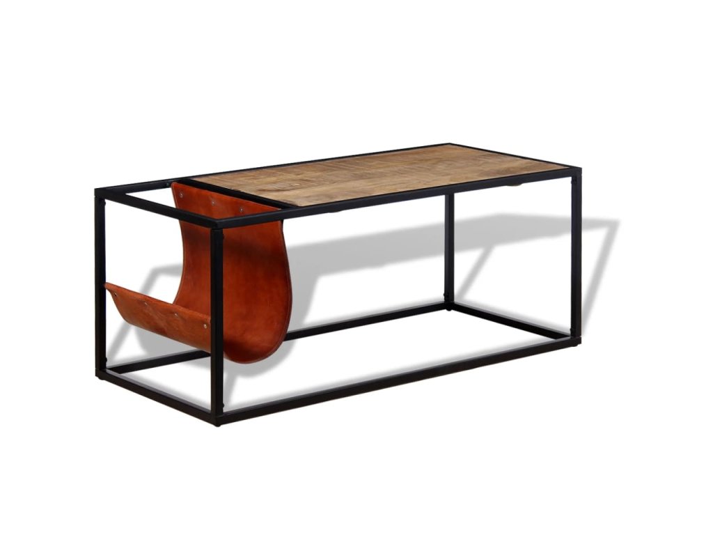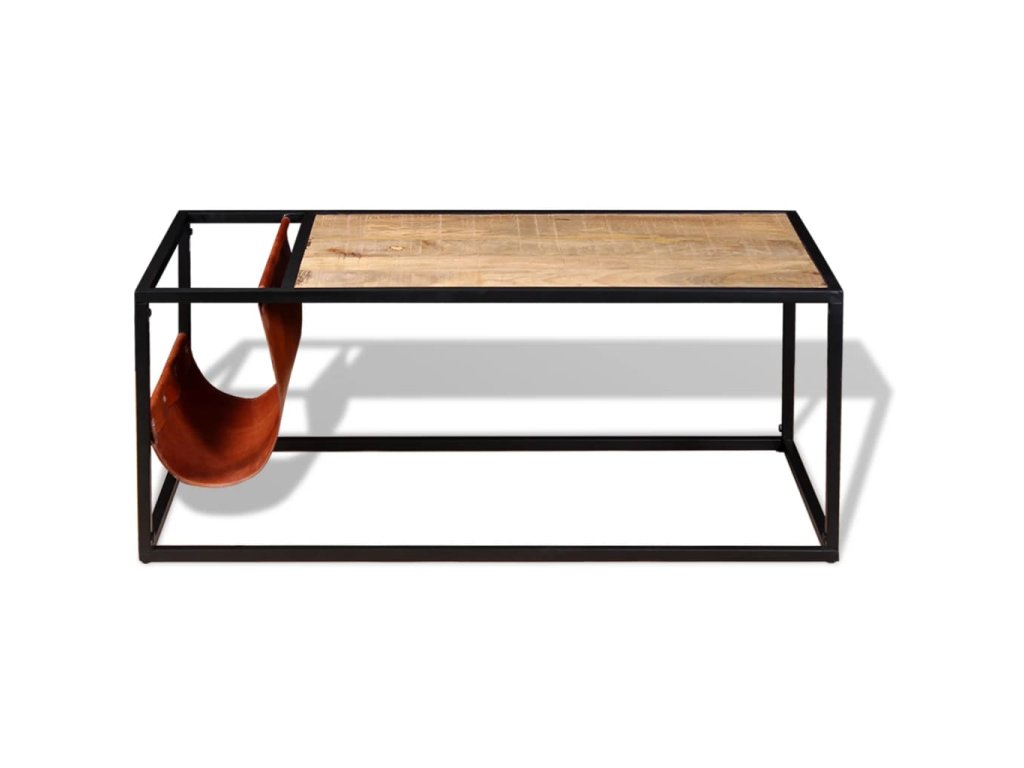 Konferenčný stolík je vyrobený z masívneho mangového dreva, vďaka čomu je robustný, stabilný a odolný. Viditeľná zrnitá štruktúra robí každý kus nábytku jedinečný a trochu odlišný od ostatných. Oceľový rám s práškovým povrchom dodáva stolíku robustnosť a priemyselný šarm.