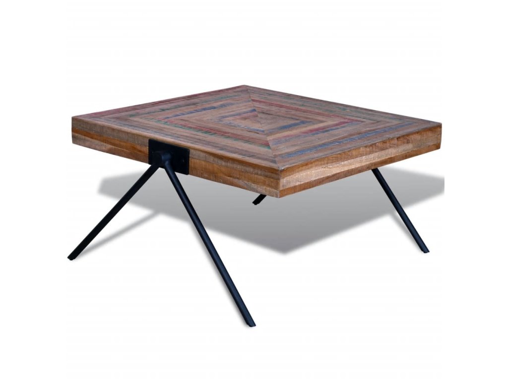 Tento konferenčný stolík z recyklovaného tíkového dreva predstavuje nadčasový doplnok do každej domácnosti. Vrchná doska z masívu poskytuje stabilné a bezpečné miesto na odkladanie nápojov, váz, misiek s ovocím či rôznych ozdôb. Kovové nohy v tvare V pôsobia originálne a sú veľmi stabilné a trvácne. Môžete ho používať aj ako príručný stolík.