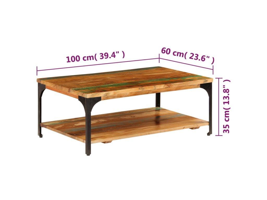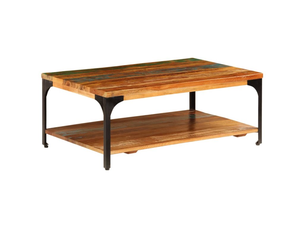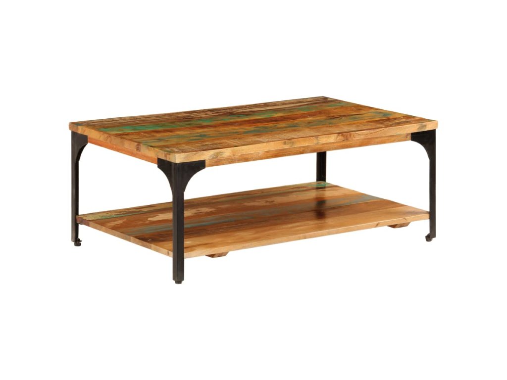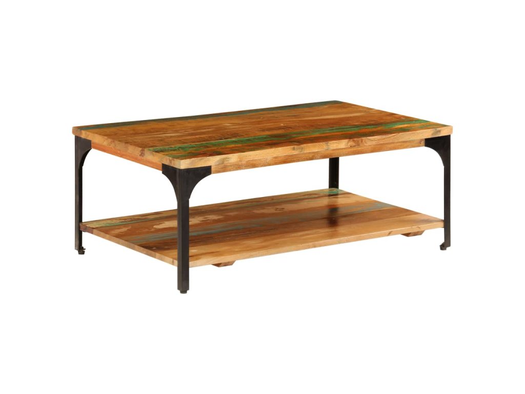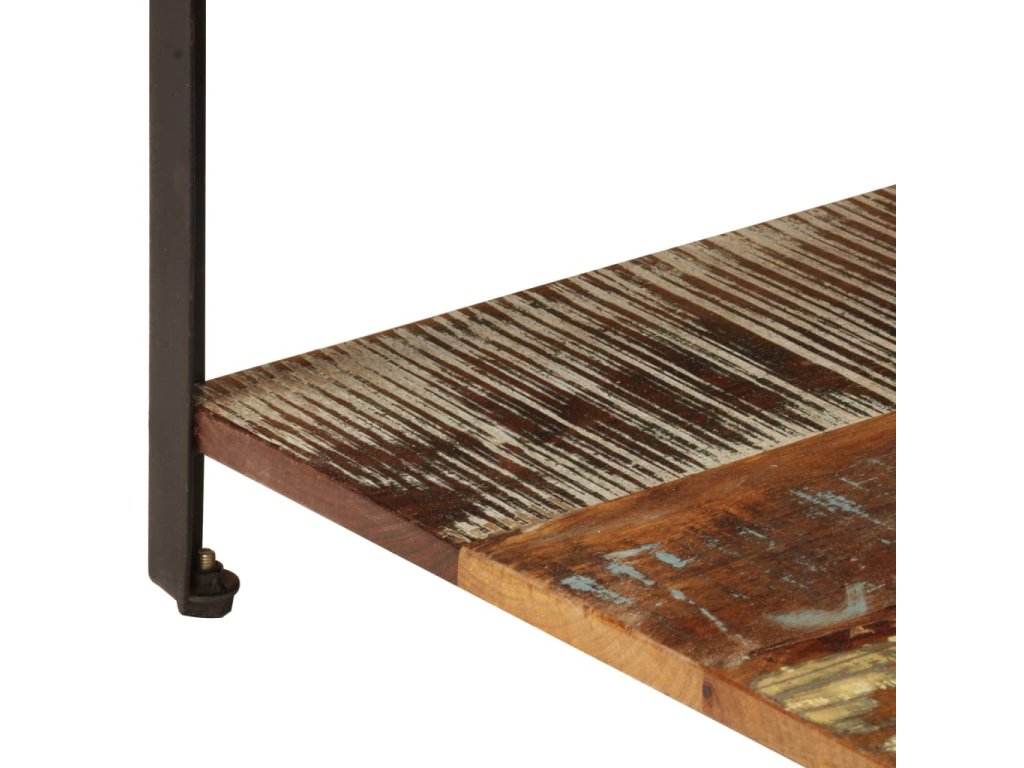 Tento príručný stolík je vyrobený z recyklovaného masívu a ocele s práškovou povrchovou úpravou, vďaka čomu je veľmi stabilný a trvácny. Recyklované drevo pochádza z trámov, podláh a nosníkov zo starých zbúraných stavieb a pozostáva z rôznych typov dreva, ako napríklad borovicového, tíkového, bukového, dubového, cédrového, mangového či akáciového dreva. Recyklované drevo sa preto vyznačuje vlastnosťami týchto typov dreva. Recyklované drevo je staré, zvetrané a usušené, a preto sa nezmršťuje ani neohýba. Každý krok výrobného procesu sa vykonáva s najväčšou starostlivosťou, či už je to leštenie, natieranie alebo lakovanie. Vďaka remeselnému opracovaniu a krásnej textúre dreva je každý stolík ku gauču trochu odlišný od ostatných. Pod vrchnou doskou sa nachádza praktická polička na odkladanie kníh, pohárov či iných predmetov. Montáž je jednoduchá.