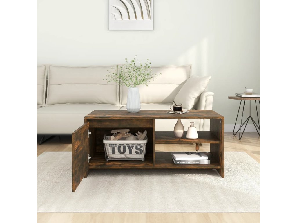 Konštrukcia tohto gaučového stolíka zaisťuje jeho pevnosť, odolnosť a dlhú životnosť. Vďaka poličkám a priehradke vo vnútri dverí poskytuje tento stolík do obývačky dostatok úložného priestoru. Pevná doska je tiež ideálna na umiestnenie nápojov, jedla a iných dekoratívnych predmetov. Okrem toho sa stôl ľahko čistí vlhkou handričkou.