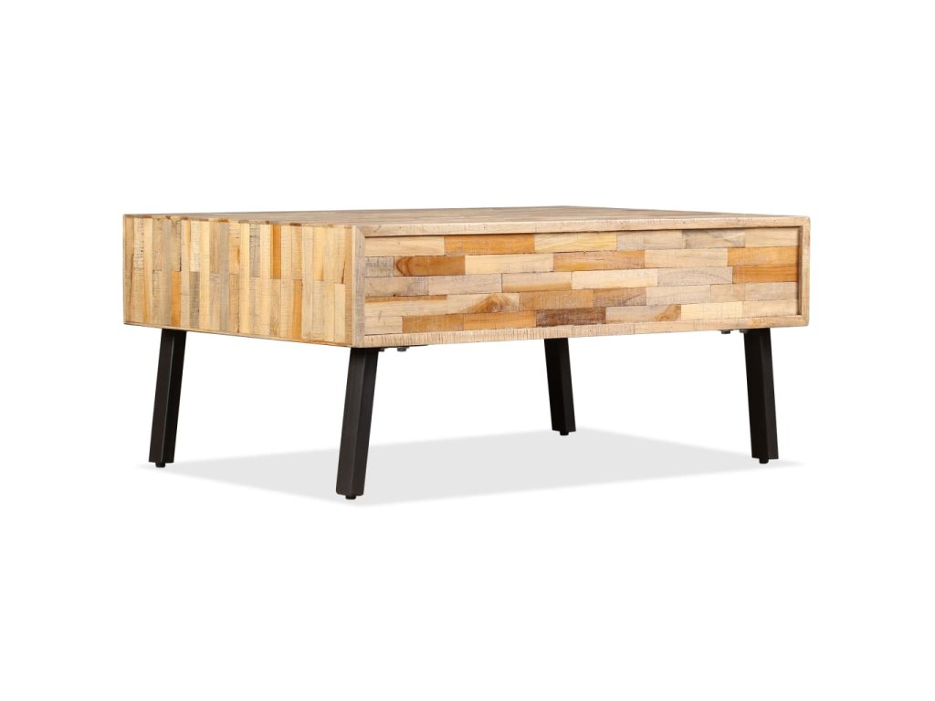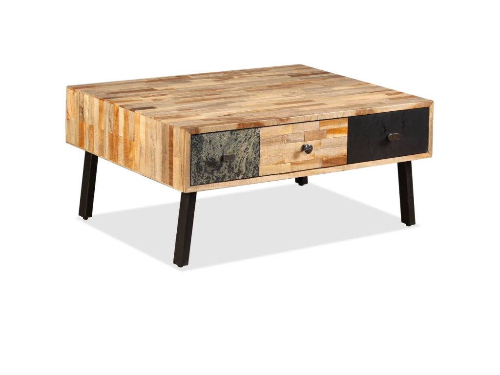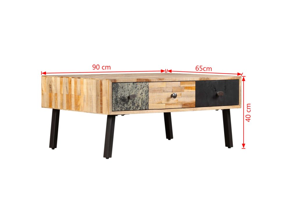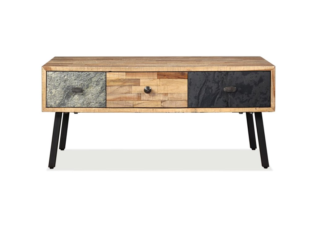 Konferenčný stolík je vyrobený z recyklovaného teakového deva, ktoré je pevné, stabilné, odolné a krásne. Masívny drevený vrch poskytuje pevné a bezpečné miesto, na ktoré môžete odložiť nápoje, vázy, koše s ovocím či dekorácie. Do troch priestranných zásuviek môžete uložiť menšie položky, ako sú kľúče, poznámkové bloky, perá a ostatné drobnosti. Mramorovaný povrch zásuviek dodáva stolíku jedinečný vintage štýl. Každý krok procesu výroby sa vykonáva s tou najväčšou starostlivosťou, či už ide o skombinovanie kusov dreva, leštenie alebo lakovanie. Montáž je jednoduchá.