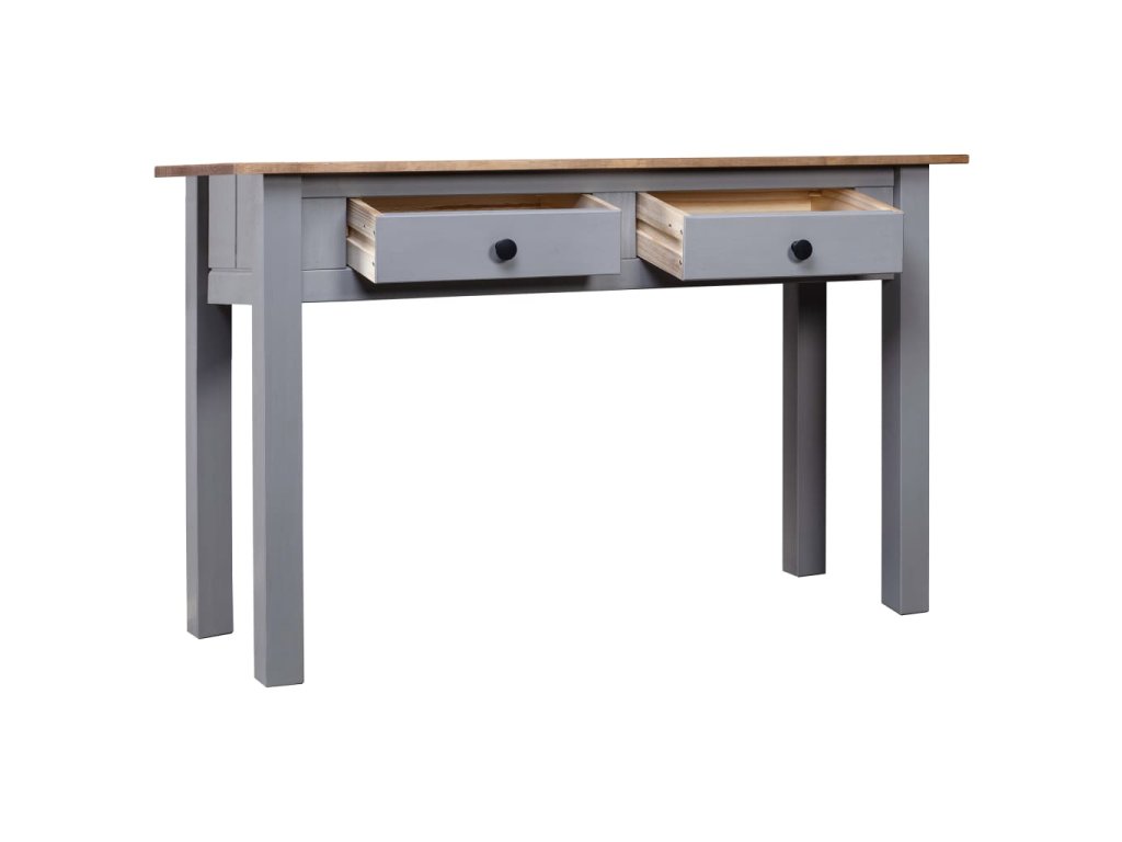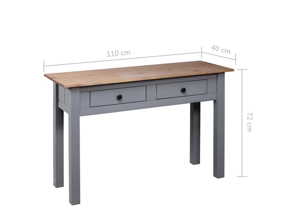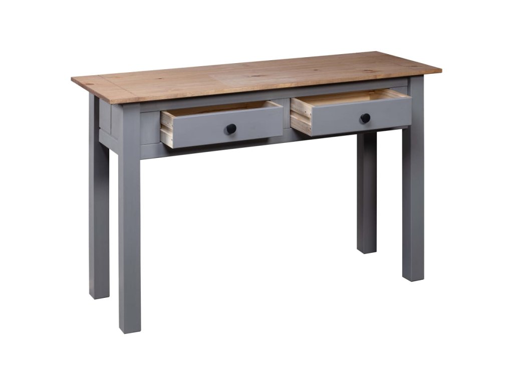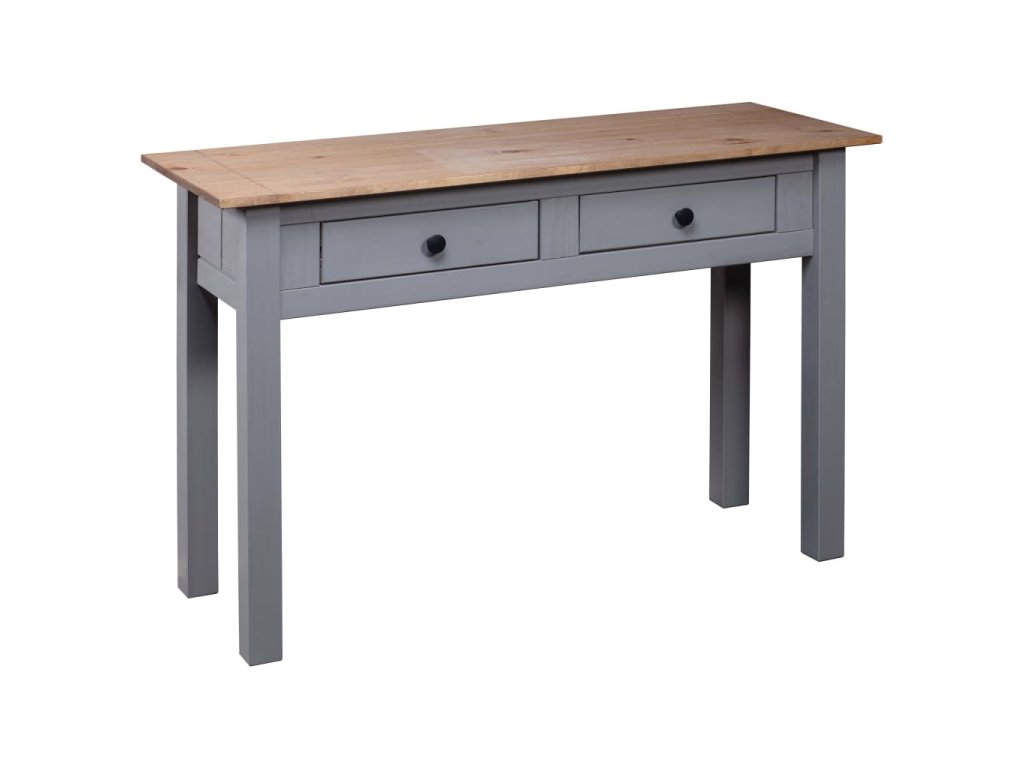 Konzolový stolík bol odborne vyhotovený z borovicového masívu, a preto je veľmi pevný a trvácny. Vďaka kompaktnému dizajnu ho môžete umiestniť takmer kamkoľvek. Pevná doska stola je ako stvorená na vystavenie rôznych dekoratívnych predmetov, rámikov s fotkami alebo kvetov v kvetináčoch. 2 zásuvky poskytujú dodatočný priestor na odkladanie menších predmetov.