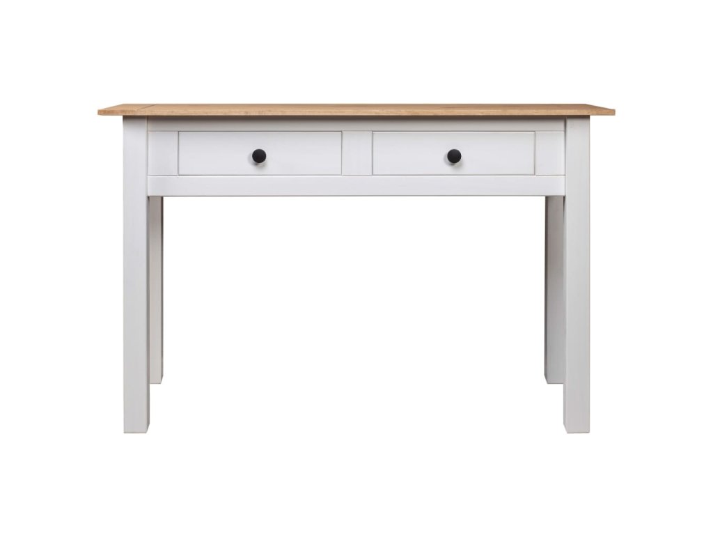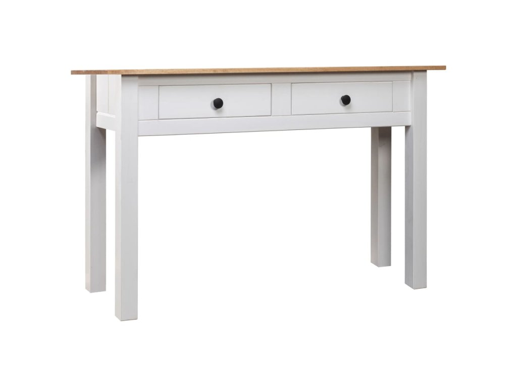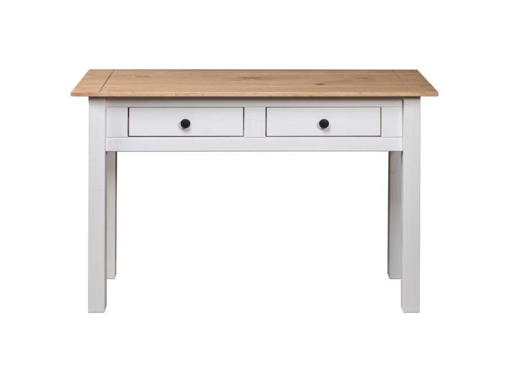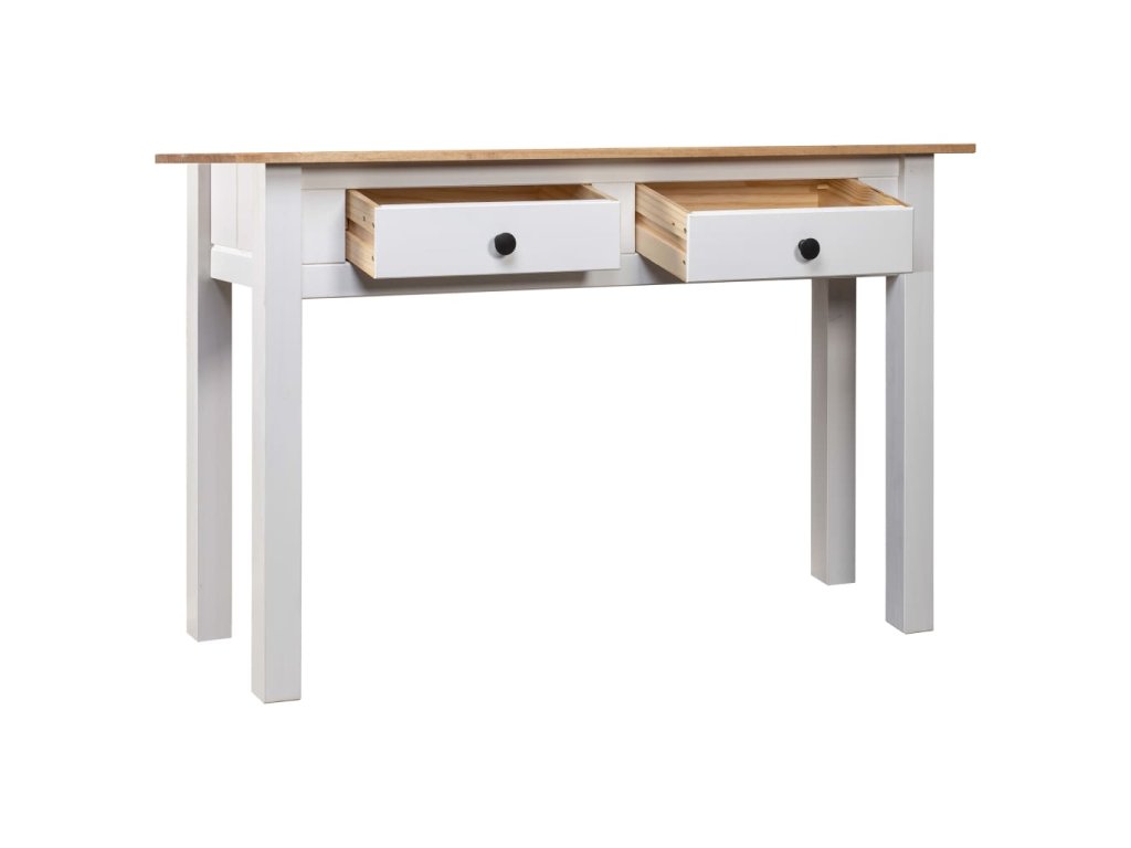 Konzolový stolík bol odborne vyhotovený z borovicového masívu, a preto je veľmi pevný a trvácny. Vďaka kompaktnému dizajnu ho môžete umiestniť takmer kamkoľvek. Pevná doska stola je ako stvorená na vystavenie rôznych dekoratívnych predmetov, rámikov s fotkami alebo kvetov v kvetináčoch. 2 zásuvky poskytujú dodatočný priestor na odkladanie menších predmetov.