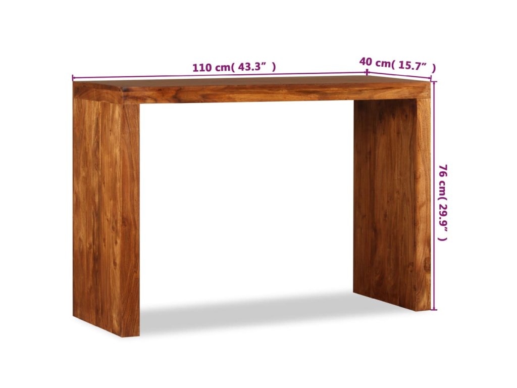 Stolík do chodby je vyrobený z akáciového masívu s medovým náterom. Akácia je trvácne drevo tropického listnatého stromu. Konzolový stolík má pevnú dosku, na ktorú si môžete položiť košík s ovocím, vázu či iné dekoratívne predmety, a drevený rám vytvára stabilnú konštrukciu. Stolík je ručne vyrobený a vďaka krásnej textúre dreva je každý kus nábytku výnimočný a trochu odlišný od ostatných. Montáž je jednoduchá.