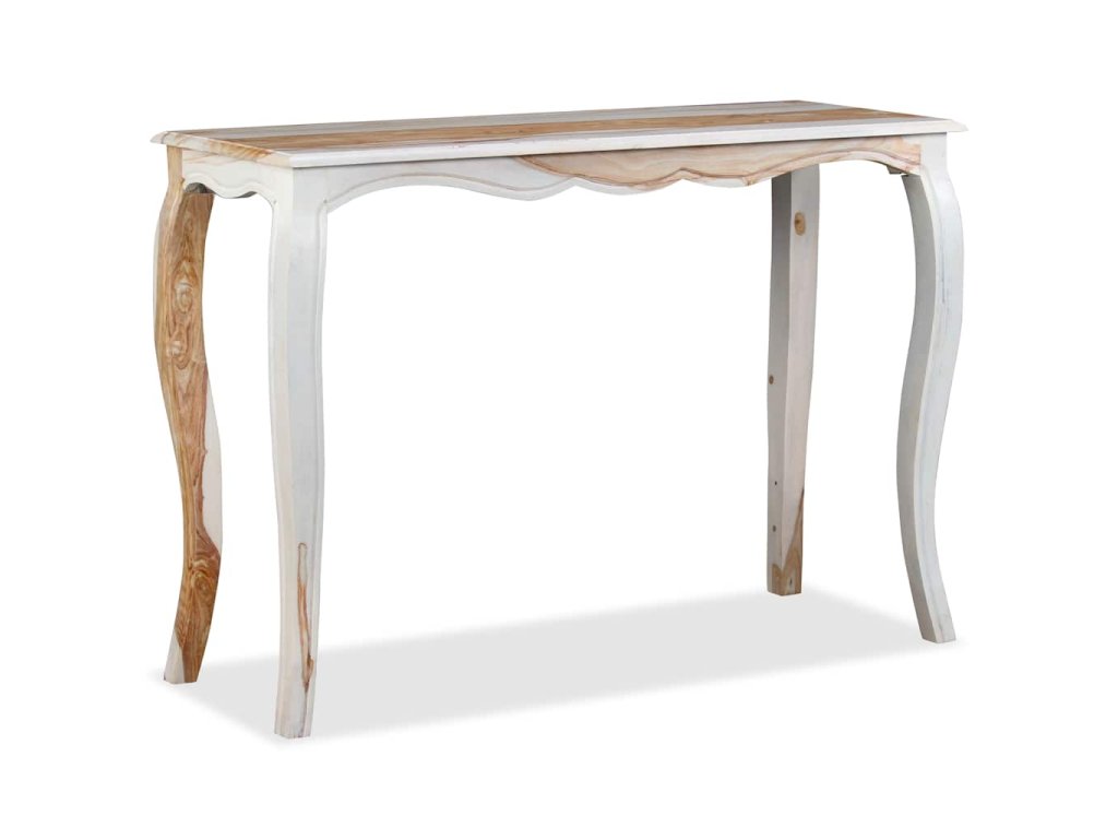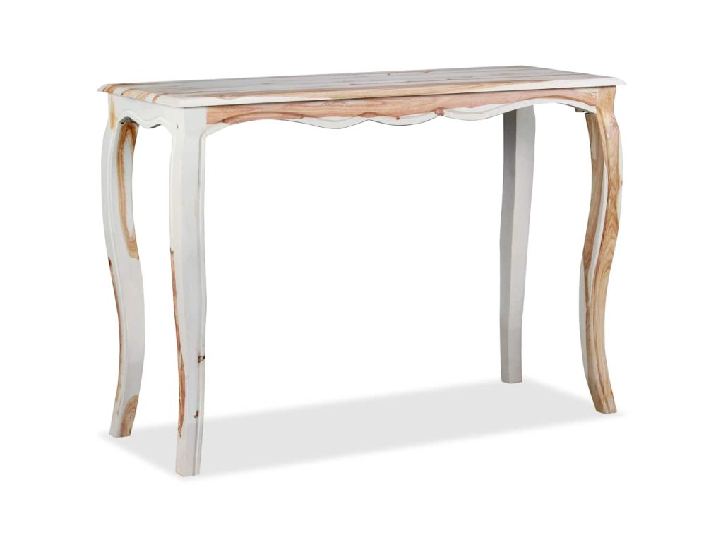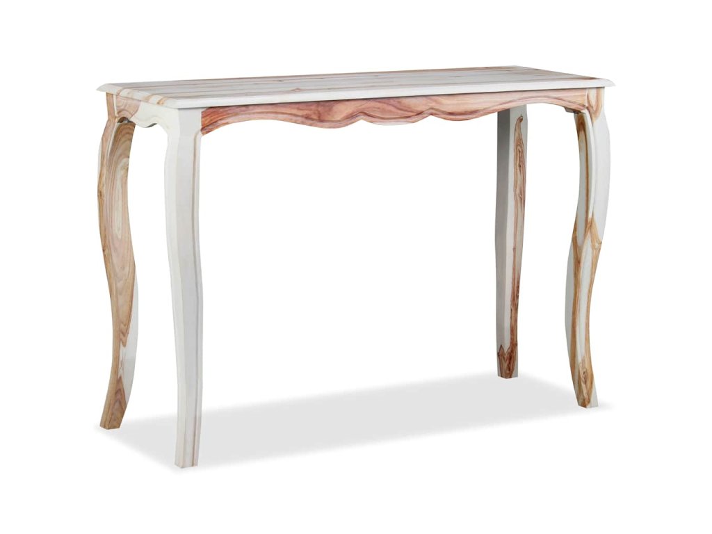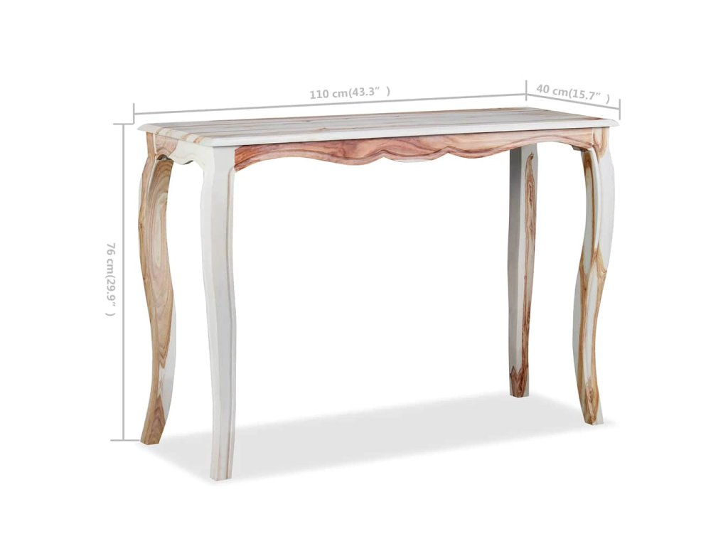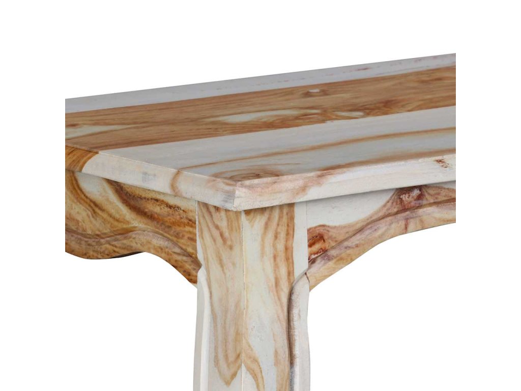 Konzolový stolík je vyrobený z masívneho akáciového dreva. Akáciaové drevo, známe aj ako palisandrové alebo ružové drevo, je drevo tropického listnatého stromu, ktoré je známe svojou bohatou textúrou. Stolík má pevnú hornú dosku, na ktorú môžete umiestniť kôš s ovocím, vázu alebo iné dekoratívne predmety. Pevné drevené nohy prispievajú k stabilnej konštrukcii. Je ručne vyrobený a nádherná štruktúra dreva zaisťuje, že je každý kúsok nábytku jedinečný a trochu odlišný od ostatných. Montáž je jednoduchá.