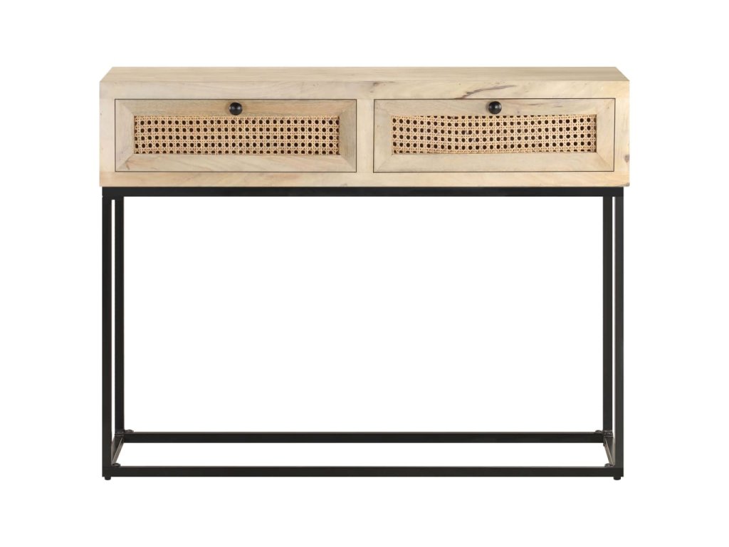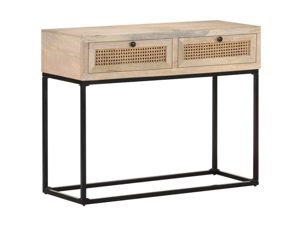 Masívne mangovníkové drevo je tropické tvrdé drevo, ktoré sa môže pochváliť nielen pevnosťou, ktorá unesie veľkú hmotnosť, ale aj odolnosťou voči opotrebovaniu. Vďaka vynikajúcemu remeselnému spracovaniu a krásnej štruktúre dreva je každý príručný stolík mierne odlišný od ostatných kusov. Halový stolík je vybavený dostatočným úložným priestorom, takže môžete svoje veci vystaviť alebo prehľadne uložiť. Oceľový rám prispieva k robustnosti a stabilite. A čo viac, stolík pod zrkadlo má na zásuvkách ručne tkanú trstinu, ktorá dotvára rustikálny pôvab.