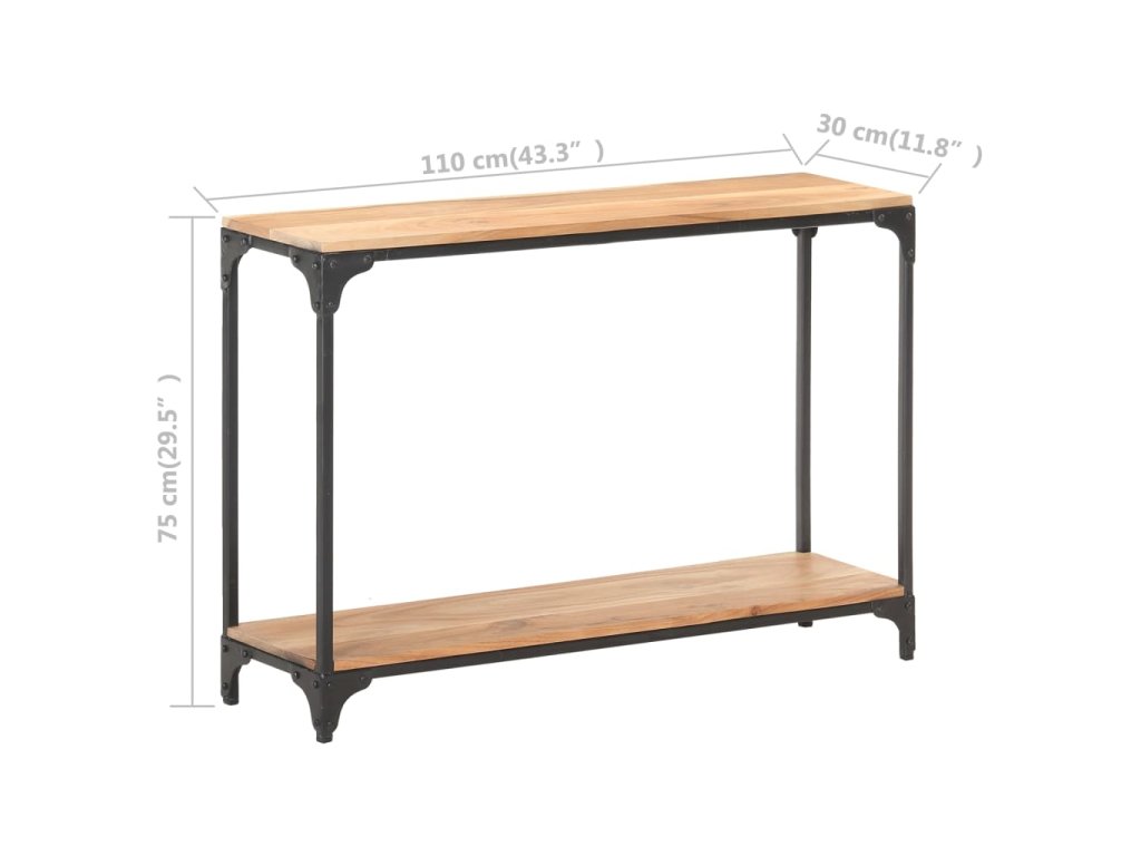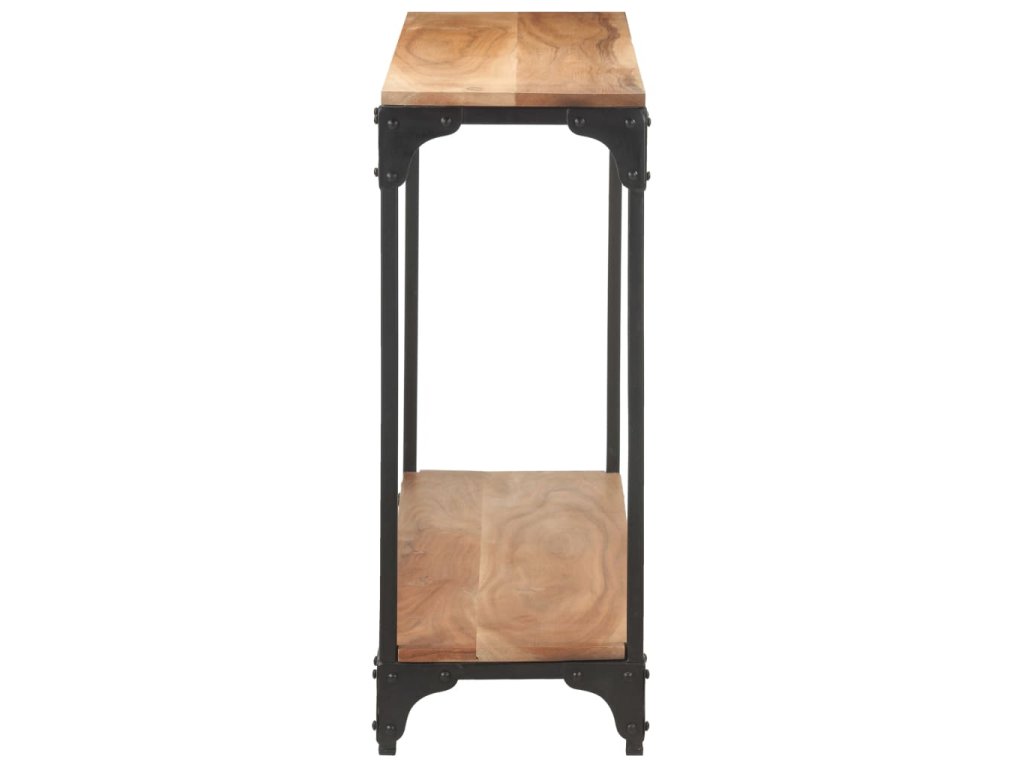 Tento halový stôl je vyrobený z masívneho akáciového dreva, tvrdého dreva s hustou kresbou. Tento krásne navrhnutý stôl je stabilný, odolný a pútavý. Vďaka vynikajúcemu remeselnému spracovaniu a krásnej štruktúre dreva sa každý kus mierne líši od ostatných kusov. S oceľovým rámom s čiernym práškovým nástrekom je drevený stôl stabilný a pevný. Pevná doska vám ponúka dostatok miesta na uloženie košíkov s ovocím, rámikov na fotografie alebo iných dekoratívnych predmetov. Spodná polica je ideálna na uloženie časopisov, kníh a iných malých vecí, ktoré sú dobre usporiadané a na dosah ruky.