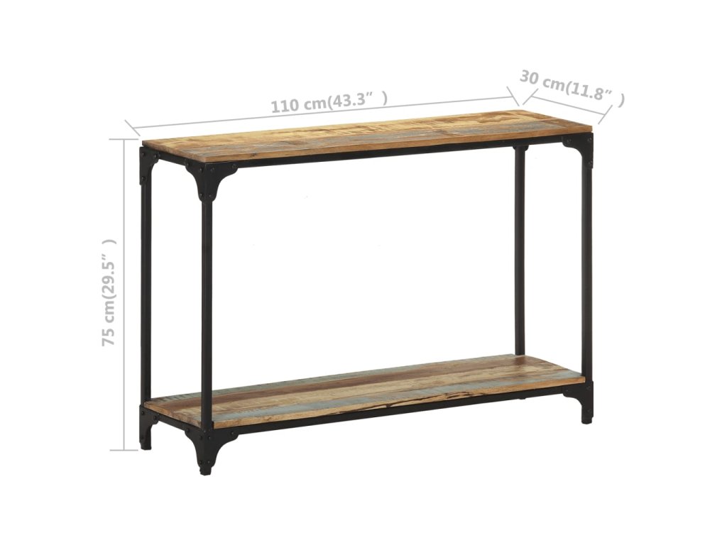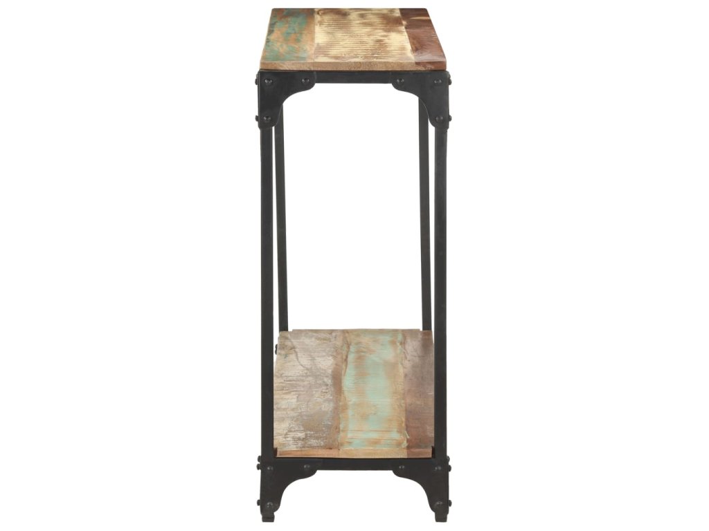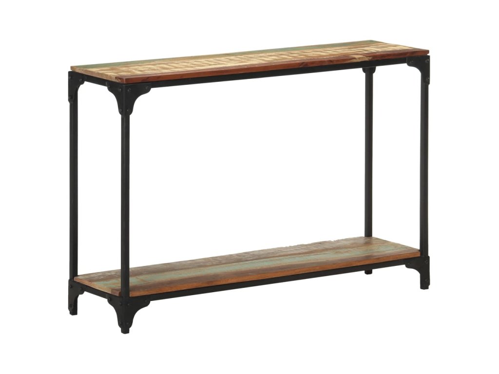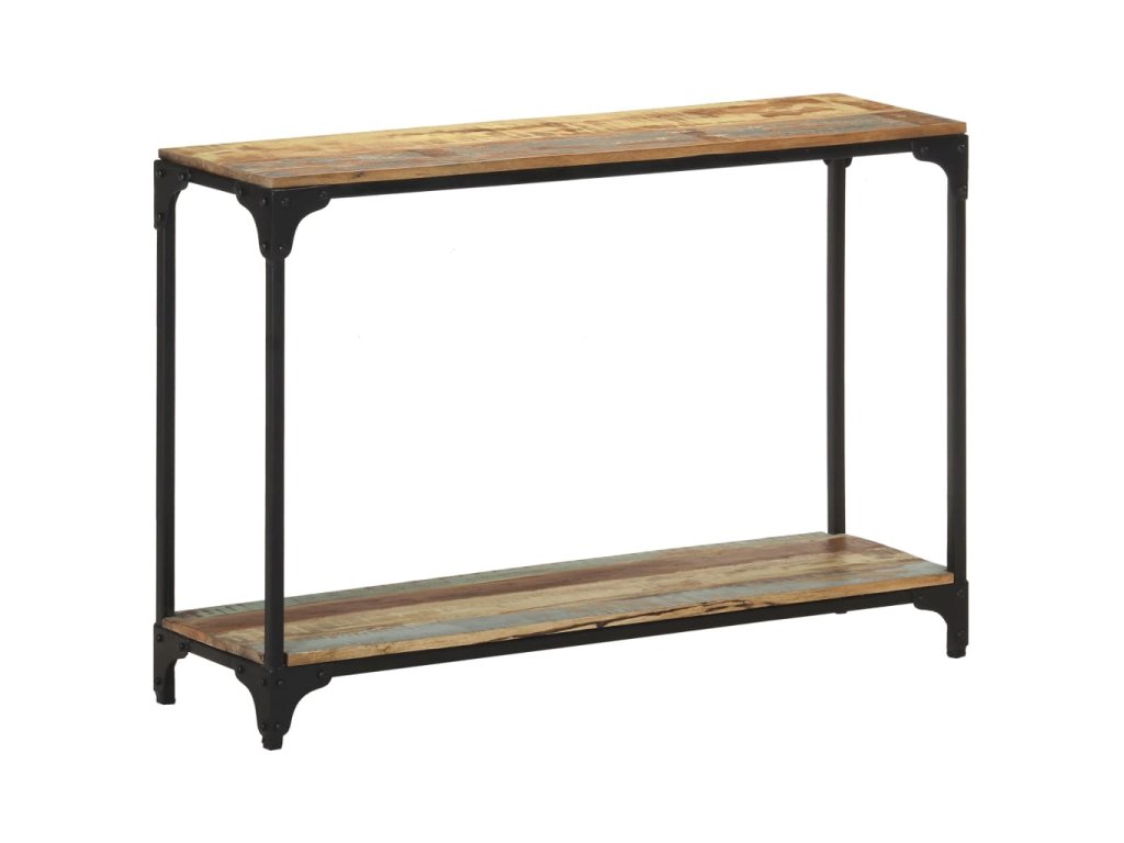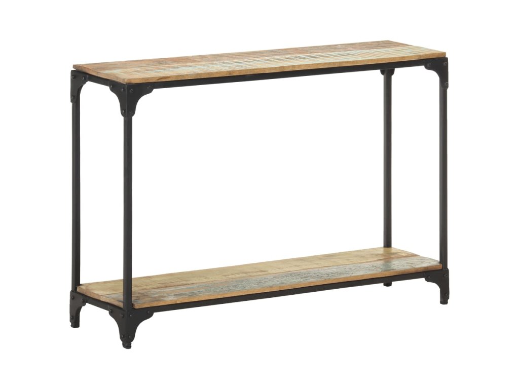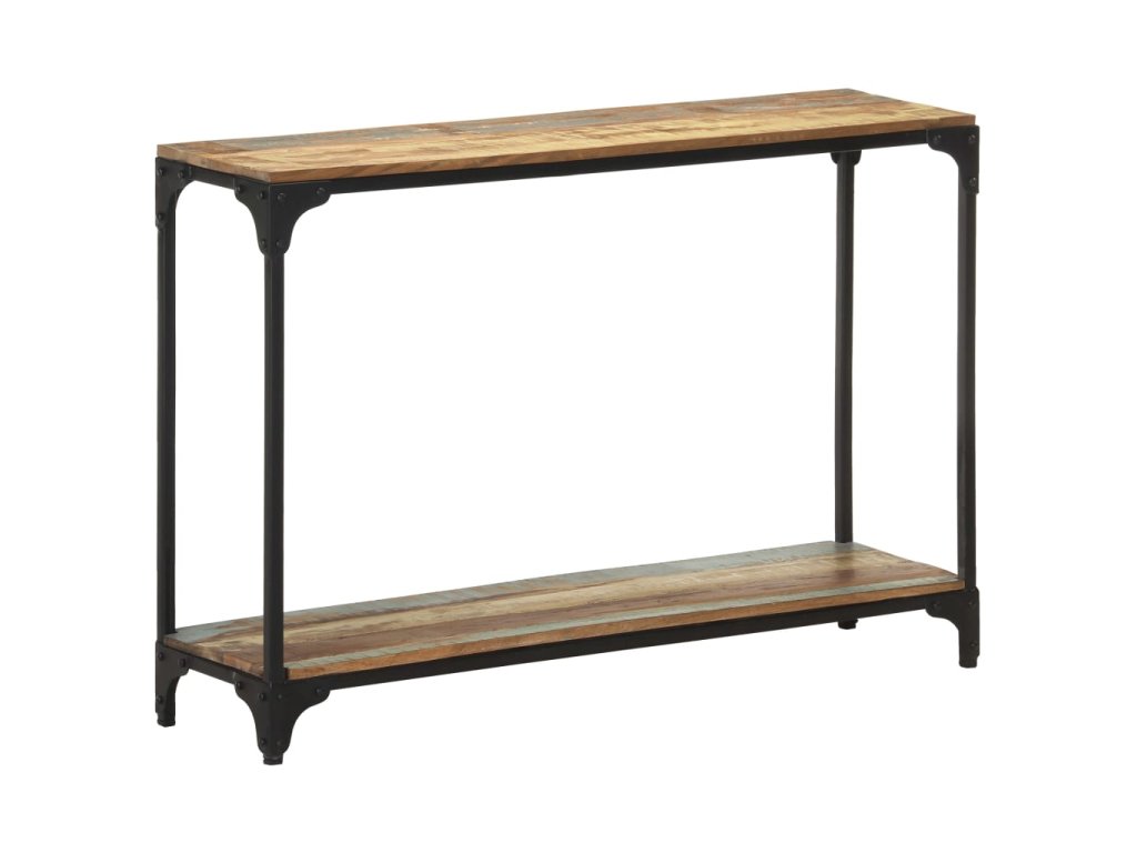 Tento stolík do haly je vyrobený z recyklovaného dreva, ktoré pochádza z trámov, podláh a nosníkov zo starých zbúraných stavieb a pozostáva z rôznych typov dreva, ako napríklad borovicového, teakového, bukového, dubového, cédrového, mangovníkového či akáciového dreva. Recyklované drevo sa preto vyznačuje vlastnosťami týchto typov drevín. Drevo je staré, zvetrané a usušené, a preto sa nezmršťuje ani neohýba. Tento drevený stolík je kompletne ručne vyrobený a vďaka krásnej textúre dreva je každý kus nábytku jedinečný a trochu odlišný od ostatných kusov. Vďaka čiernemu oceľovému rámu s práškovým nástrekom je stôl stabilný a odolný. Pevná vrchná doska vám ponúka dostatok priestoru na odloženie ovocných košov, zarámovaných fotografií alebo iných dekoratívnych predmetov. Spodná polica je ideálna na úhľadné usporiadanie časopisov, kníh a iných drobností na dosah ruky.