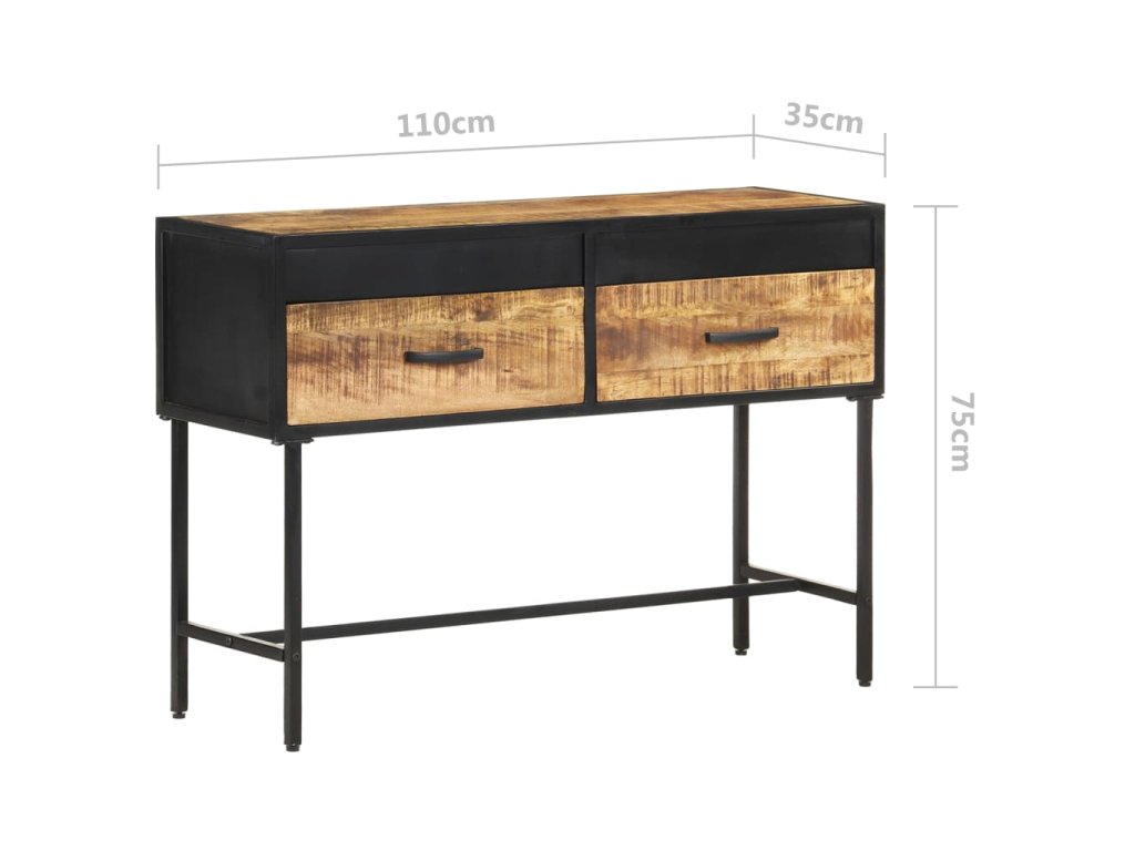 Tento predsieňový stôl je vyrobený z hrubého mangovníkového dreva, čo je tvrdé drevo s bohatou štruktúrou. Surové mangovníkové drevo má nielen silu uniesť aj vyššiu hmotnosť, ale je aj trvácne. Pevná doska je ideálna na umiestnenie niektorých dekoratívnych predmetov, ako sú vázy alebo rastliny v črepníkoch. Tento stolík má 2 zásuvky, ktoré poskytujú dostatok úložného priestoru na usporiadanie dôležitých vecí.