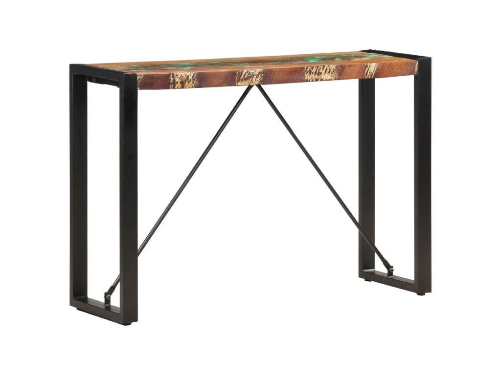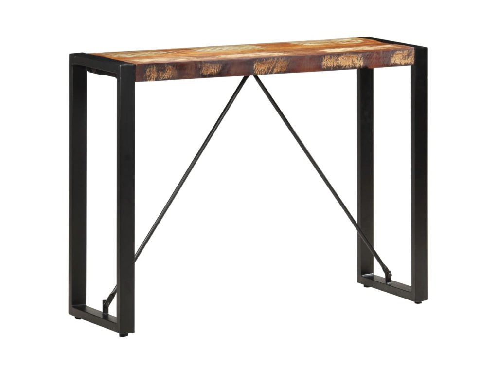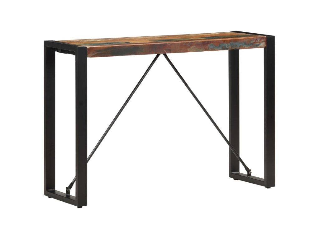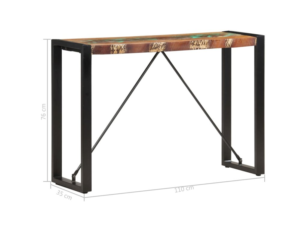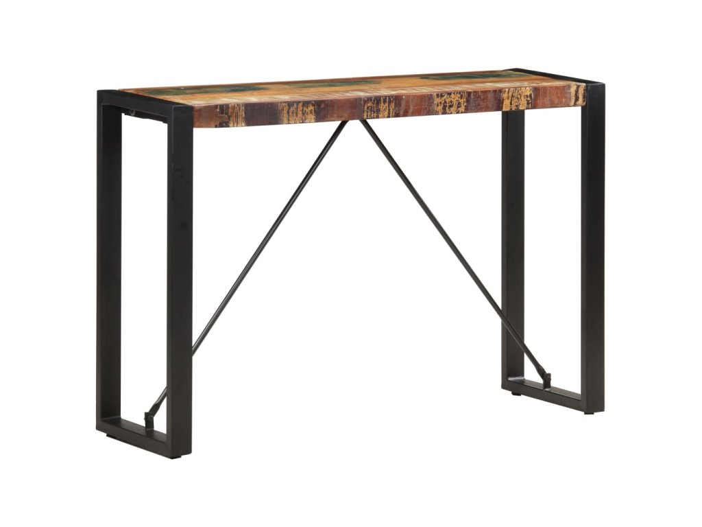 Tento stolík do haly je vyrobený z masívneho recyklovaného dreva, čo znamená, že sa vyznačuje vlastnosťami rôznych druhov drevín, ako je napríklad akáciaové, teakové, mangovníkové alebo akáciové drevo. Recyklované drevo je pevné, stabilné, trvácne a krásne. Znaky opotrebovania a remeselné spracovanie dodávajú každému kúsku nábytku jeho jedinečný vzhľad a pôsobivý vintage štýl. Čierne oceľové nohy s práškovaným povrchom dodávajú stolíku stabilitu a ešte viac umocňujú priemyselný vzhľad.
