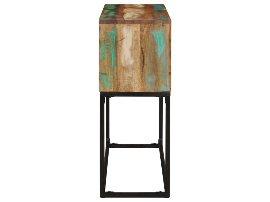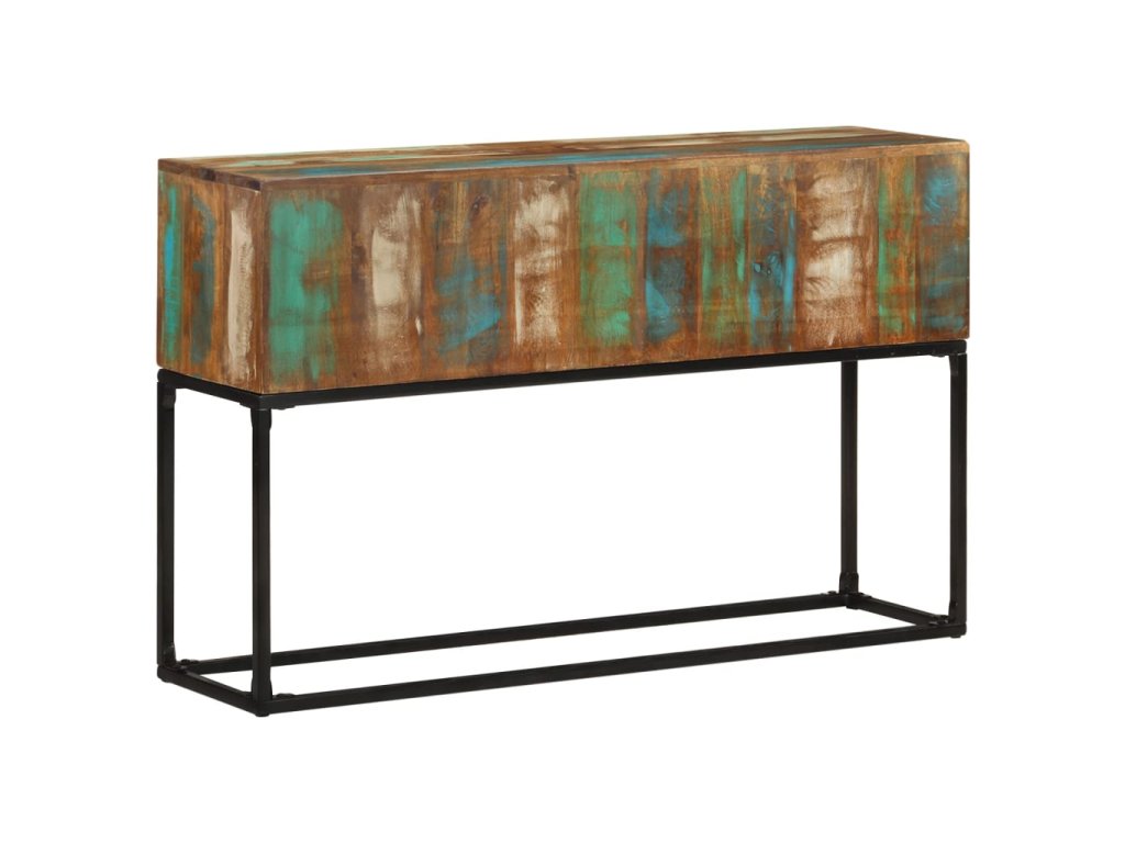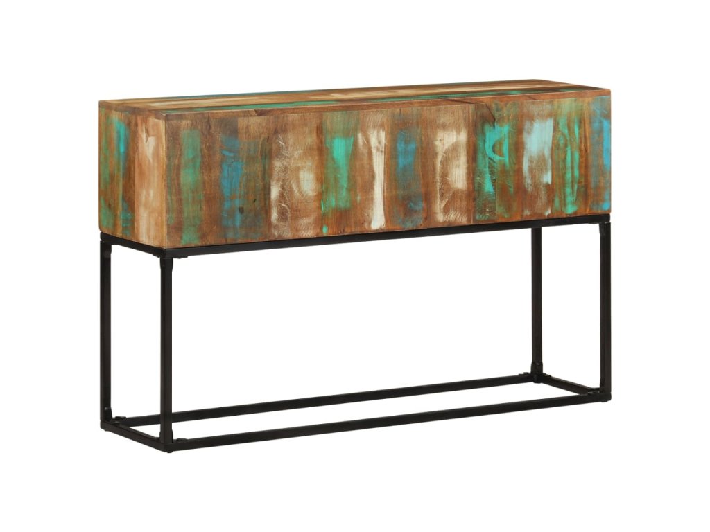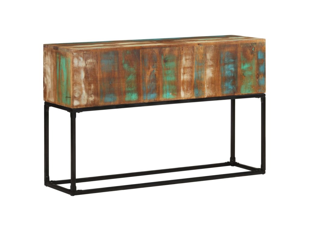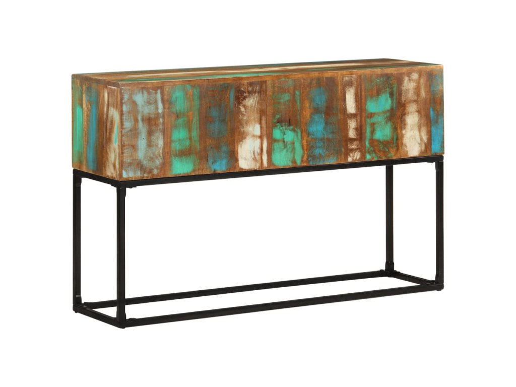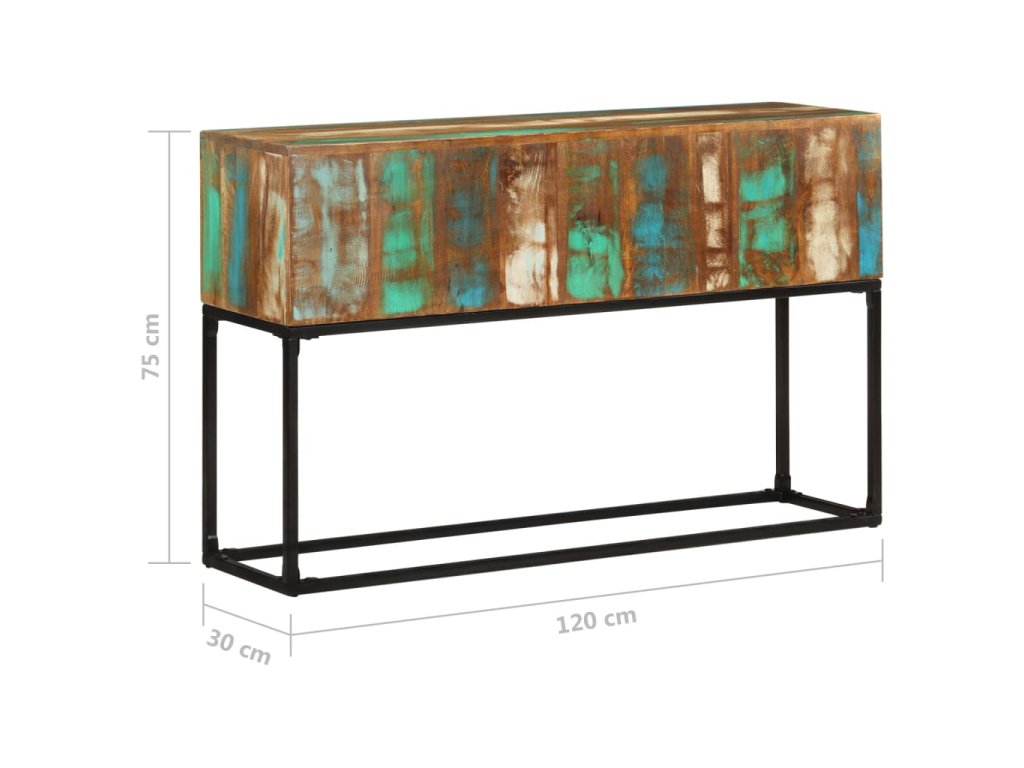 Tento vchodový stôl je ručne vyrobený z masívneho regenerovaného dreva, kombinácie regenerovaného dreva vrátane teakového dreva, mangovníkového dreva, borovicového dreva, bukového dreva atď. Tieto dreviny sú recyklované zo starých budov, ako sú továrne, kôlne a lode. Vďaka tomu ide o fantastickú ekologickú možnosť pri výrobe nábytku. Keďže každý kus je vyrobený ručne, farby sa líšia a objavuje sa mnoho modrých, zelených, krémových a niekedy aj oranžových, červených a ružových odtieňov. To dokonca znamená, že každý z nich je jedinečný! Okrem toho železné nohy s práškovou povrchovou úpravou dodávajú stolu stabilitu, ako aj industriálny šarm.