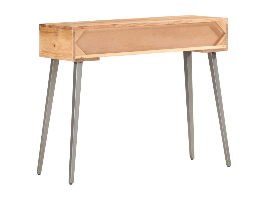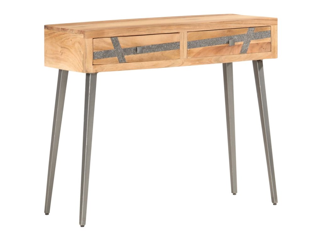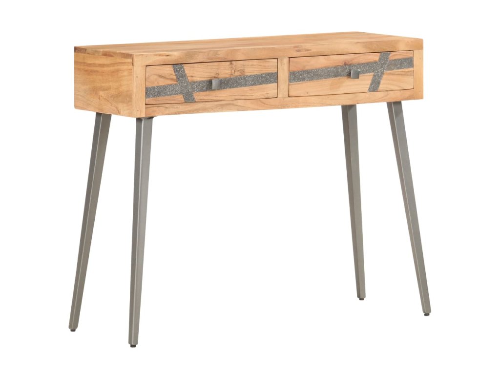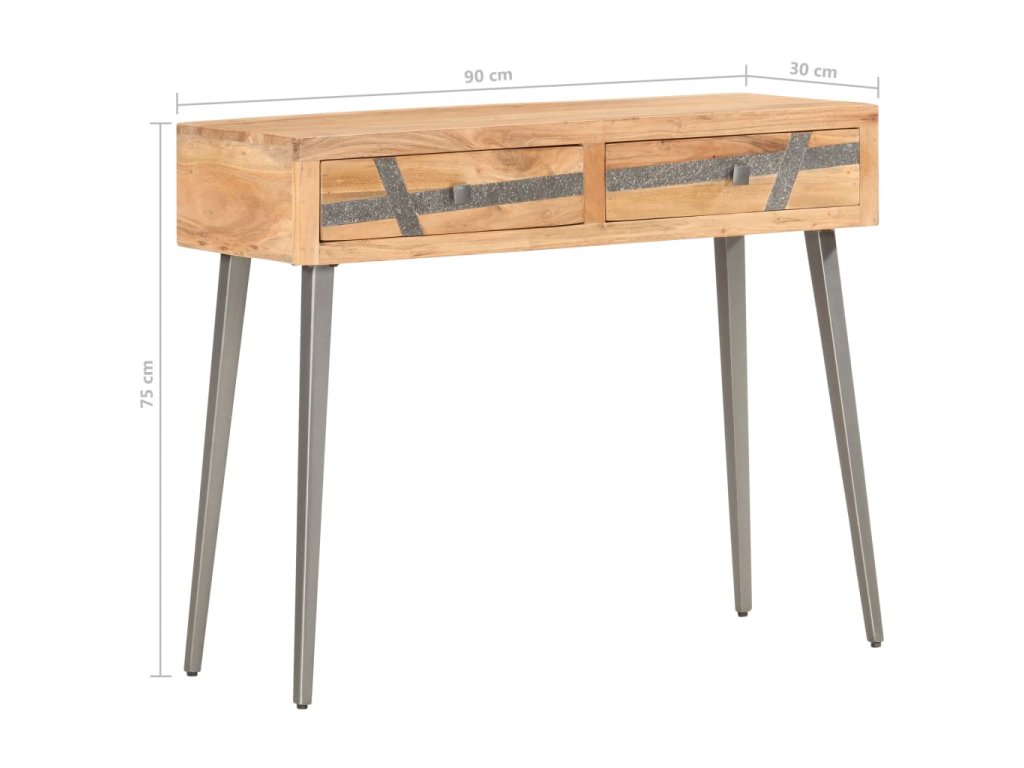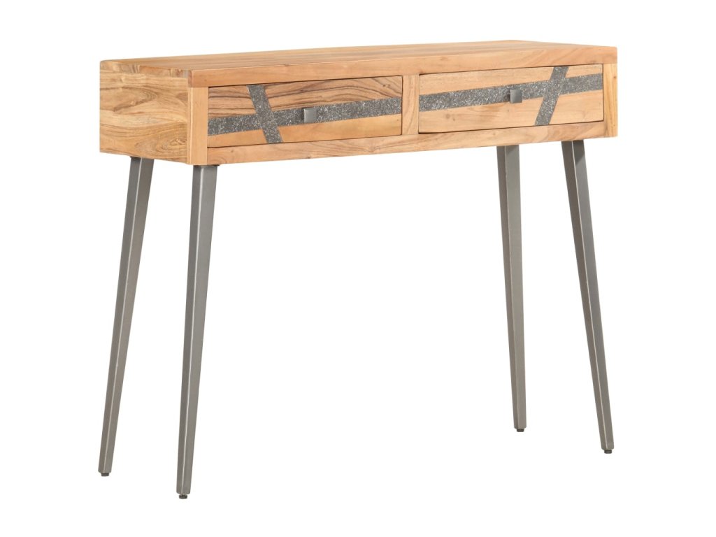 Bočný stolík s pruhmi v prednej časti vykladanými kameňmi, je vyrobený z akáciového dreva, ktoré je pevné, trvanlivé a krásne. Vďaka remeselnému spracovaniu a krásnej štruktúre dreva je každý kus nábytku jedinečný a mierne odlišný od ostatných. Každý krok procesu sa vykonáva s najväčšou starostlivosťou, či už ide o leštenie, natieranie alebo lakovanie. Oceľové nohy s práškovým nástrekom dodávajú stolu priemyselný štýl. Okrem toho má táto skrinka do chodby 2 zásuvky, ktoré poskytujú dostatočný priestor na uloženie všetkých druhov menších predmetov na dosah. Montáž je jednoduchá.