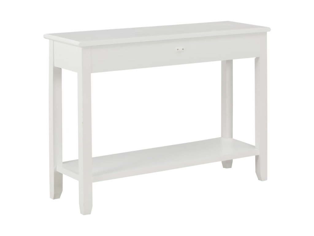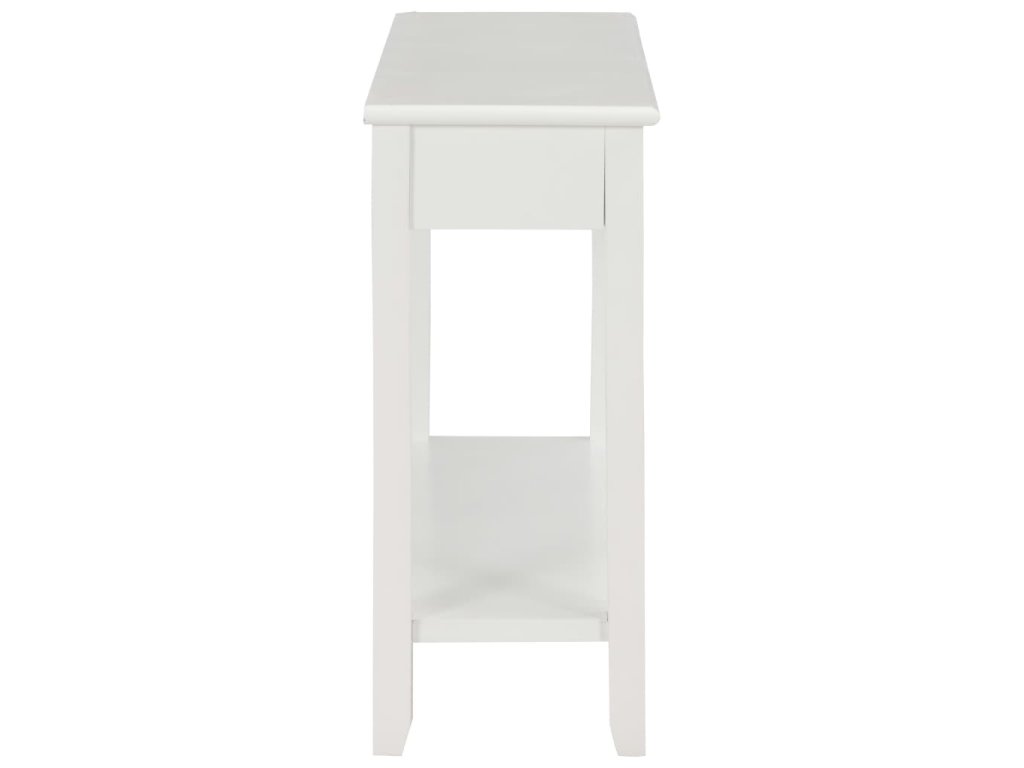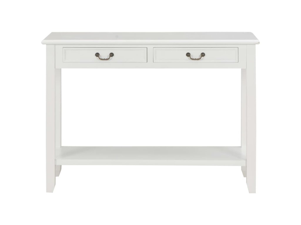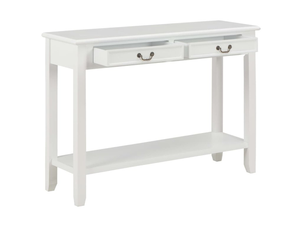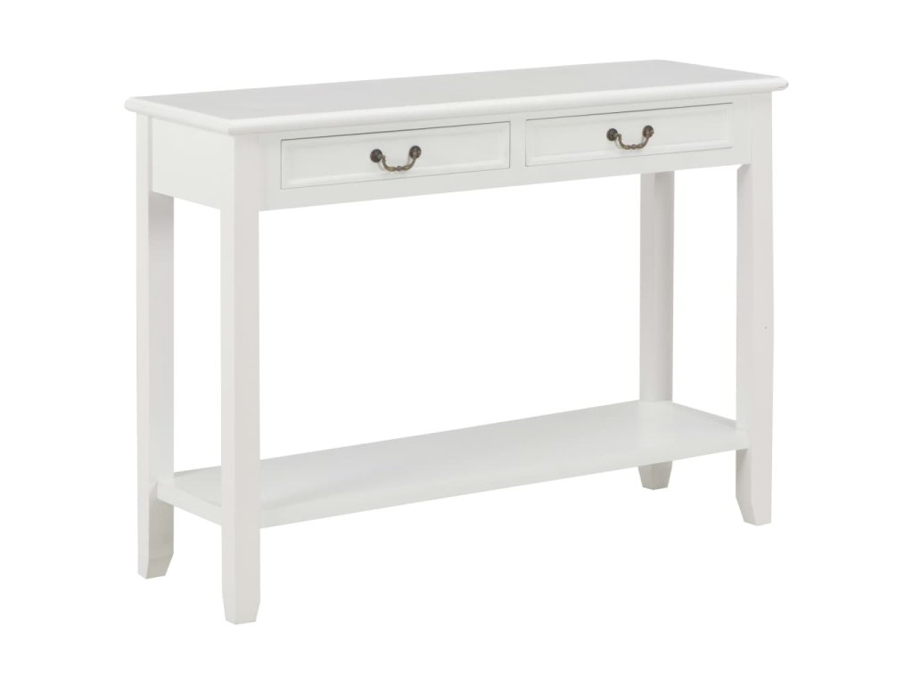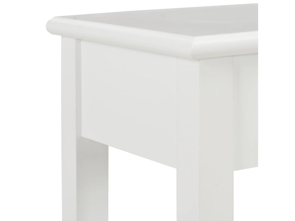 Stolík má pevnú dosku z MDF, na ktorú môžete umiestniť dekoratívne predmety, ako sú ovocné koše alebo vázy. Nohy z masívneho borovicového dreva zaručujú stabilitu a trvácnosť a zaisťujú dlhé roky používania. Má 2 zásuvky, ktoré poskytujú dostatok priestoru na uloženie všetkých menších predmetov, ktoré potrebujete mať na dosah ruky. Polička vytvára dodatočný priestor napríklad na uloženie obuvi a iných položiek.