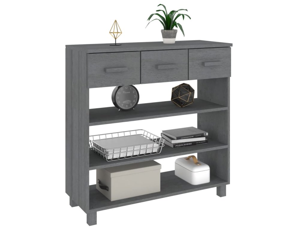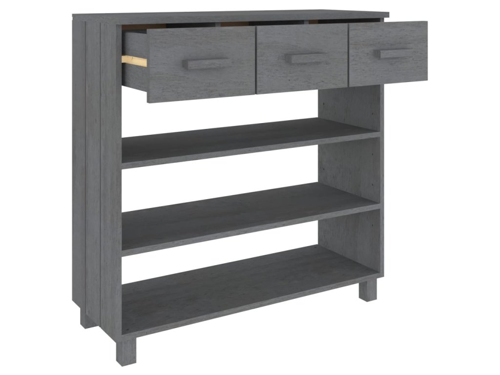 Stolík do predsiene je vyrobený z borovicového masívu, vďaka čomu je stabilný a pevný. Stolík do chodby má 3 poličky a 3 zásuvky, ktoré sa ľahko vysúvajú a poskytujú množstvo priestoru na prehľadné odkladanie bežných potrieb, ktoré tak budete mať vždy poruke. Robustná stolová doska je ako stvorená na vystavenie dekoratívnych predmetov, ako sú rámiky s fotkami či kvety v kvetináčoch.