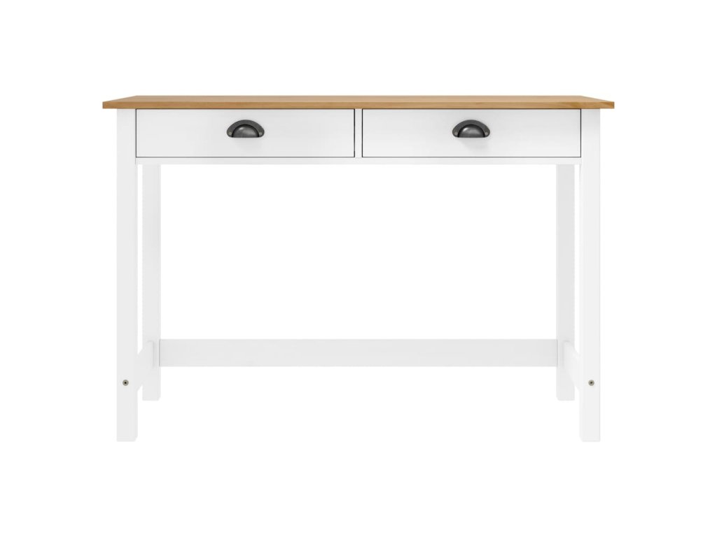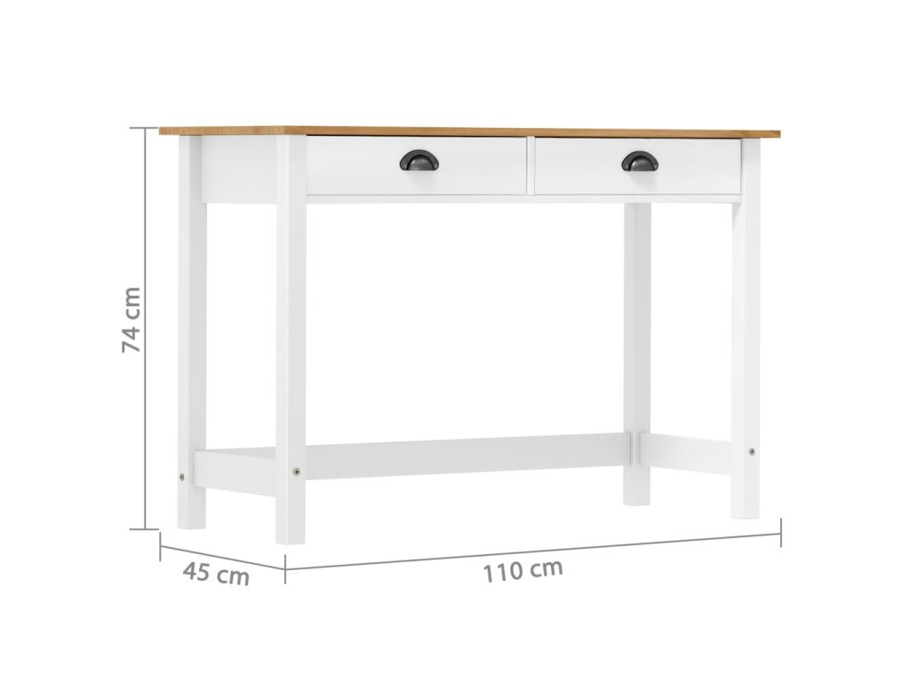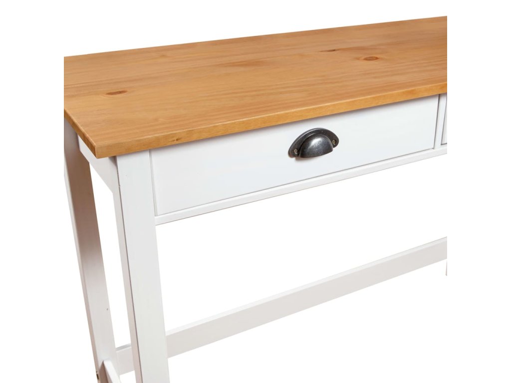 Drevený stolík je kombináciou excelentného remeselného spracovania a vynikajúcej funkčnosti. Konzolový stolík má kompaktný dizajn, preto nezaberá veľa miesta a bude sa hodiť aj do menších miestností. Dve zásuvky, ktoré sa ľahko otvárajú, vám poskytnú dodatočné miesto na odkladanie ozdôb, kozmetiky či iných osobných vecí. Tento toaletný stolík je vyrobený z masívneho borovicového dreva pre dlhú životnosť.