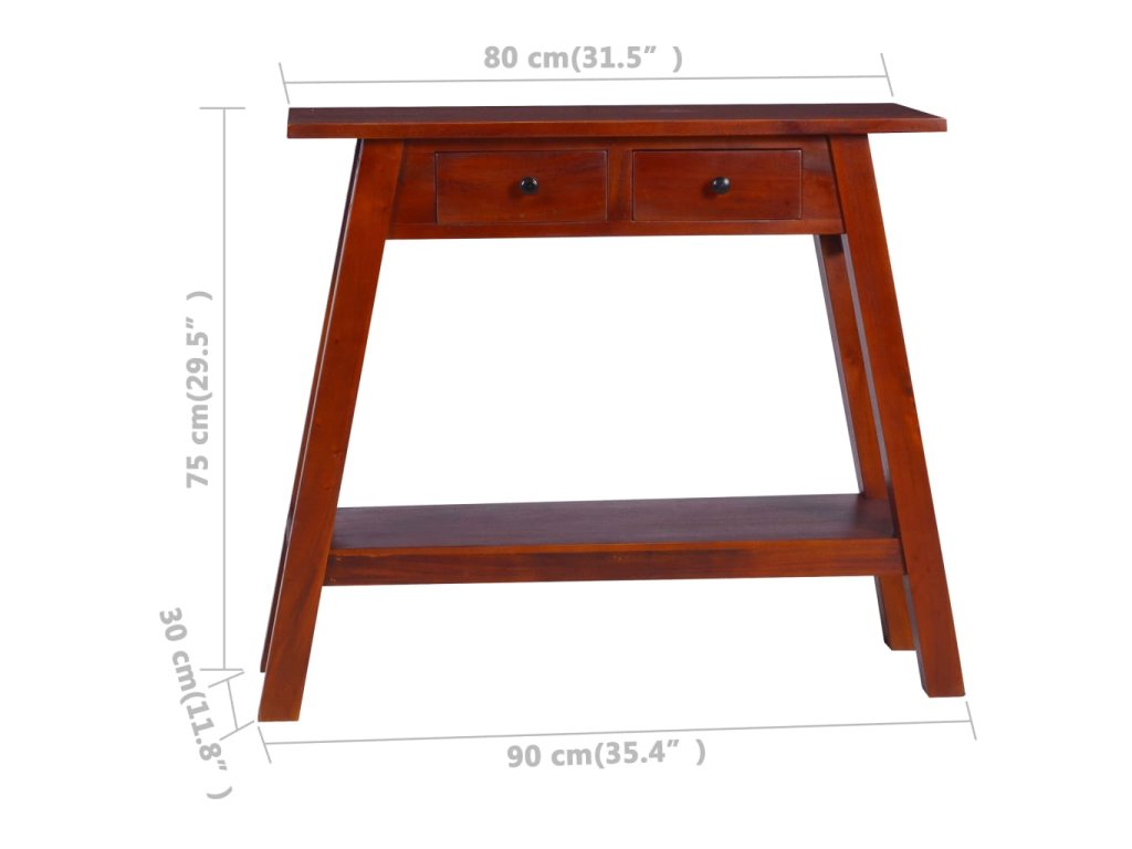 Tento stolík do haly je ručne vyrobený z masívneho mahagónového dreva, vďaka čomu je robustný a stabilný. Mahagón s rovnou a rovnomernou štruktúrou je takmer bez dutín a odoláva hnilobe. Jeho červenohnedá farba časom stmavne a po vyleštení vykazuje červenkastý lesk. Vďaka remeselnému spracovaniu a krásnej štruktúre dreva je každý kus nábytku jedinečný a od iného sa mierne líši. Konzolový stolík má tiež dostatok úložného priestoru na usporiadanie vašich základných vecí, ktoré chcete mať na dosah ruky.