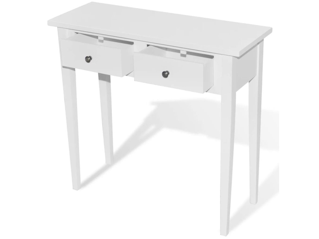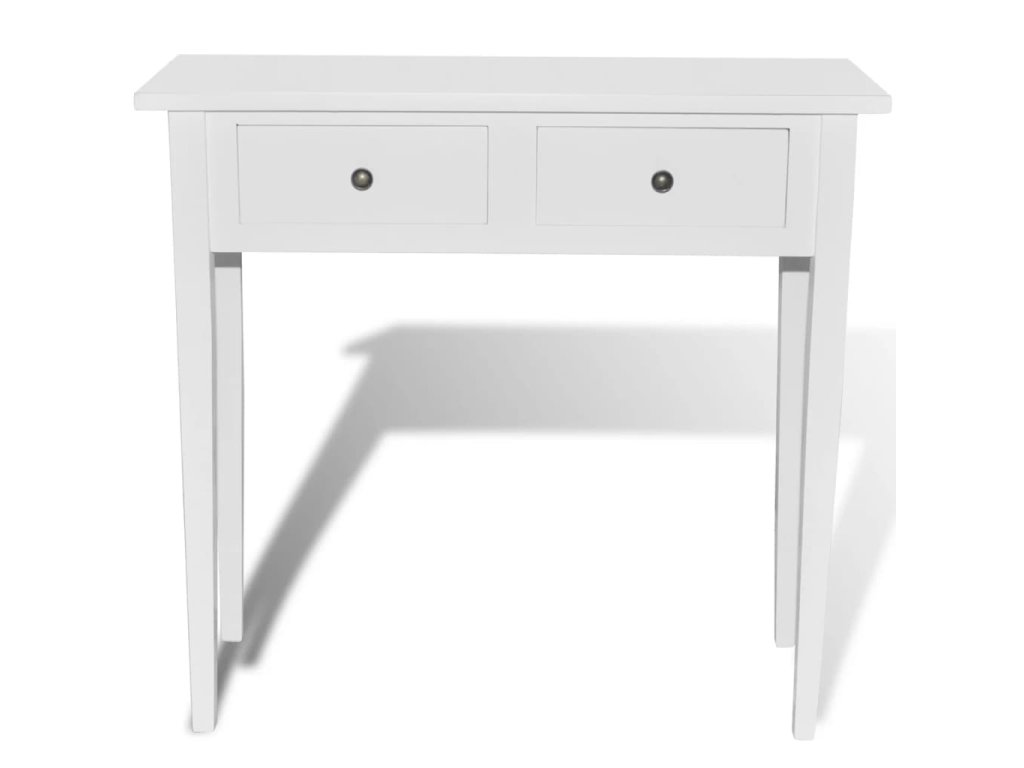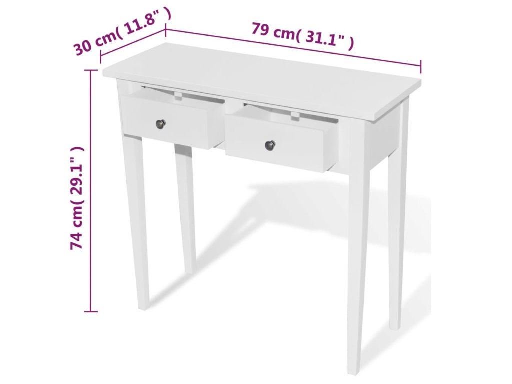 Stolík stelesňuje kombináciu excelentného remeselného spracovania a vynikajúcej funkčnosti. Konzolový stolík má kompaktný dizajn, a preto nezaberá veľa miesta a bude sa hodiť aj do menších miestností. Dve zásuvky, ktoré sa ľahko otvárajú, vám poskytnú dodatočné miesto na odkladanie dekorácií, kozmetiky či iných osobných vecí.