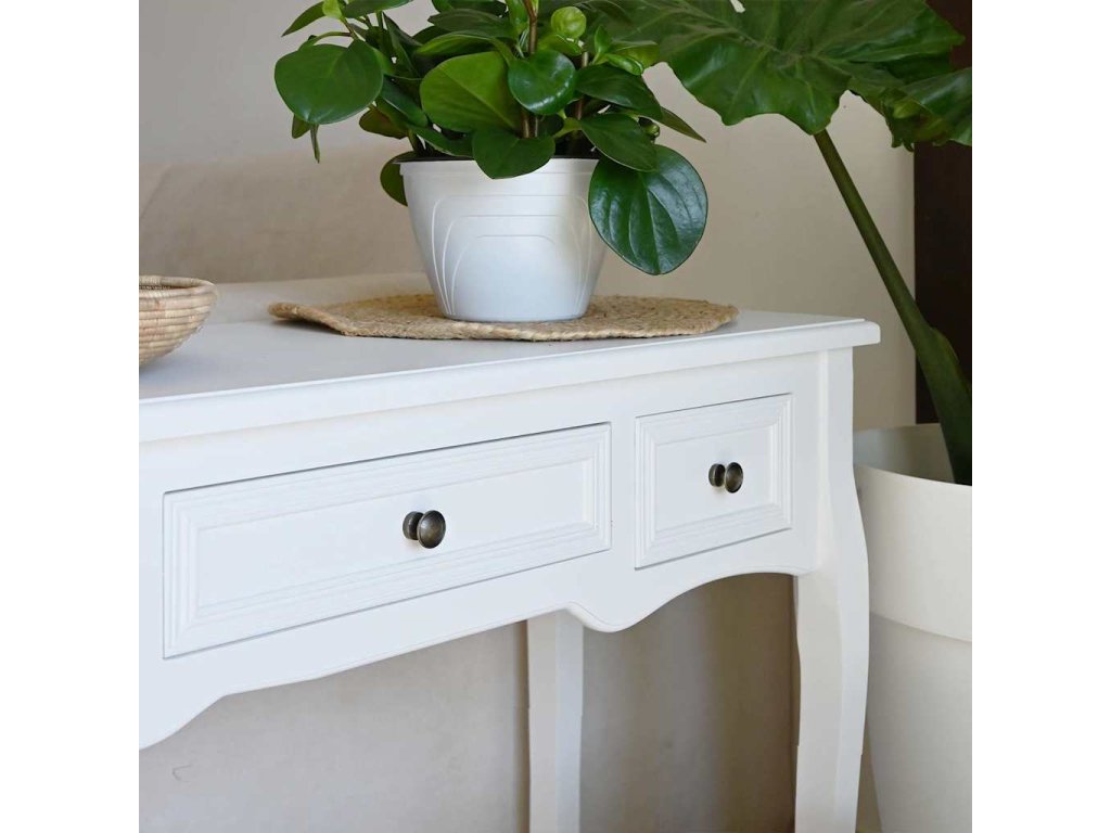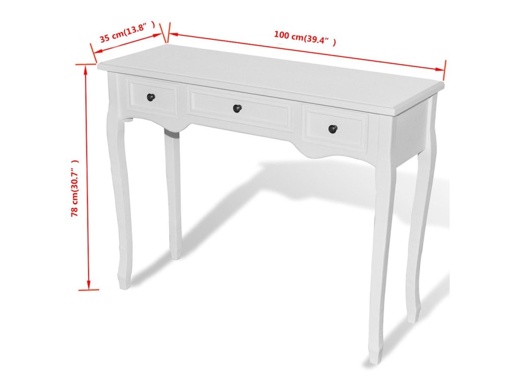 Stolík stelesňuje kombináciu excelentného remeselného spracovania a vynikajúcej funkčnosti. Konzolový stolík má kompaktný dizajn, a preto nezaberá veľa miesta a bude sa hodiť aj do menších miestností. Tri zásuvky, ktoré sa ľahko otvárajú, vám poskytnú dodatočné miesto na odkladanie dekorácií, kozmetiky či iných osobných vecí.