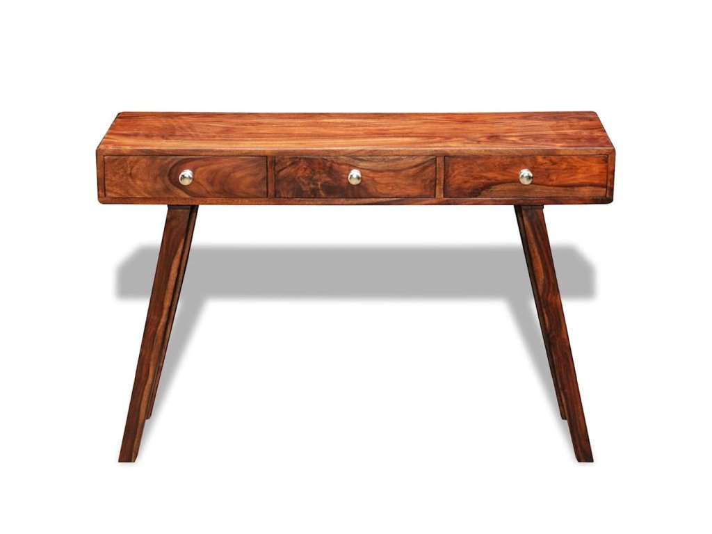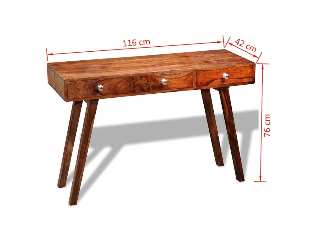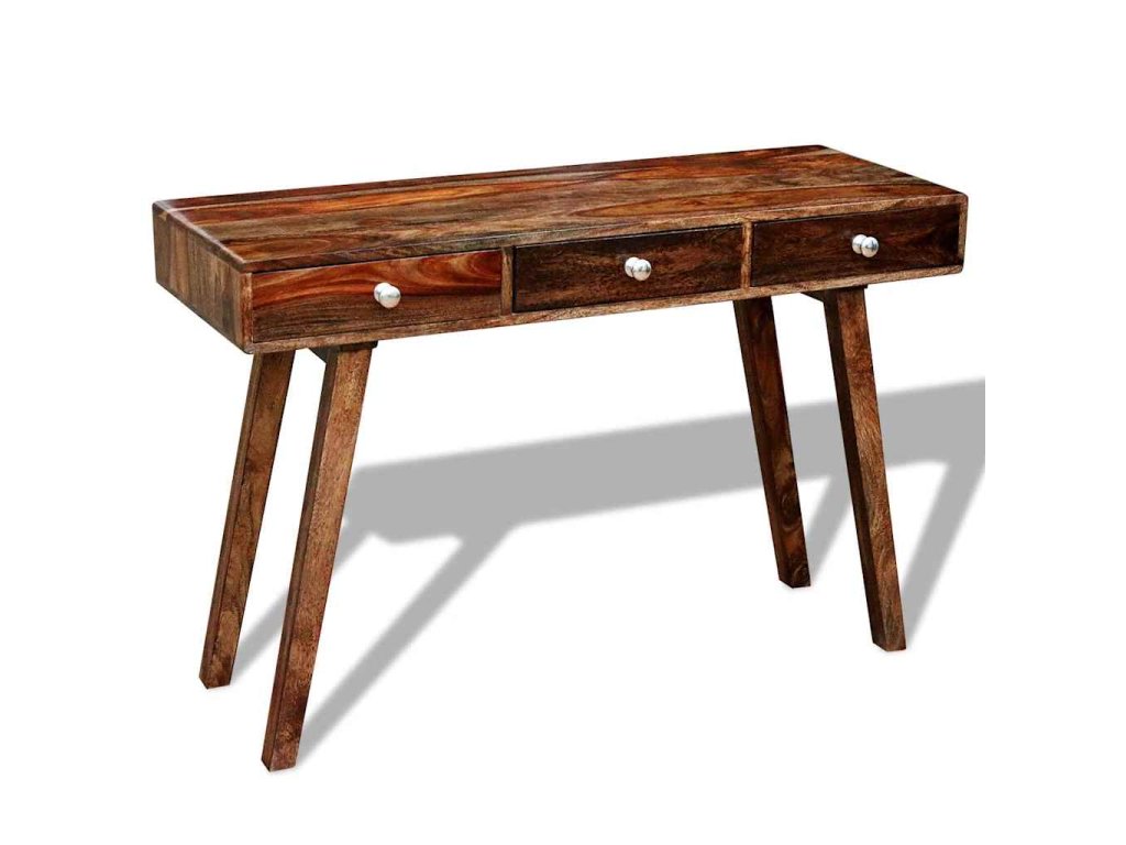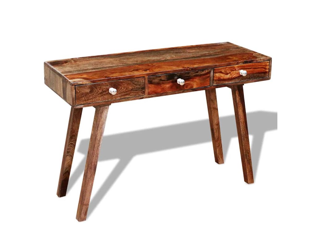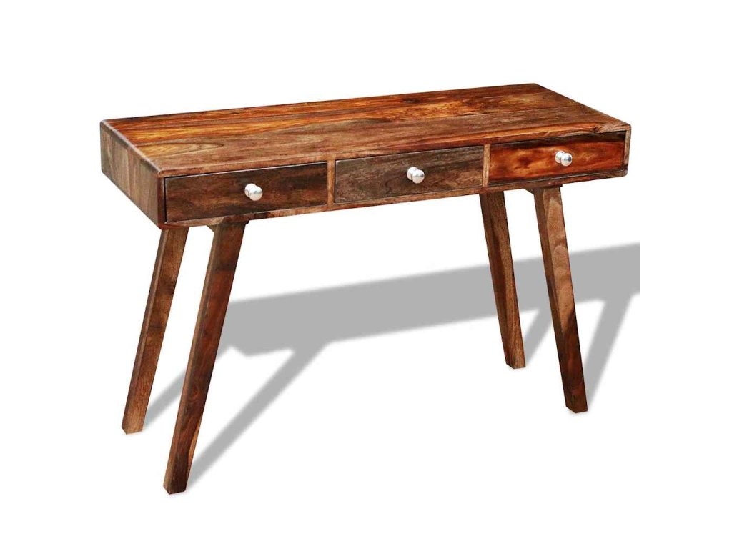 Táto komoda z dreveného masívu akáciového s prvkami vintage štýlu predstavuje štýlový a zároveň praktický doplnok do domácnosti. Dá sa využívať aj ako konzolový stolík, konzolová skrinka či vysoká komoda. Vďaka svojmu elegantnému dizajnu táto komoda zaručene upúta, nech ju umiestnite kamkoľvek. Komoda má stabilnú vrchnú dosku, na ktorú môžete položiť rôzne dekoračné predmety, ako napríklad košík s ovocím či vázu s kvetmi. 3 veľké zásuvky poskytujú dostatok priestoru na odkladanie ozdobných predmetov, kozmetiky, či iných osobných vecí.