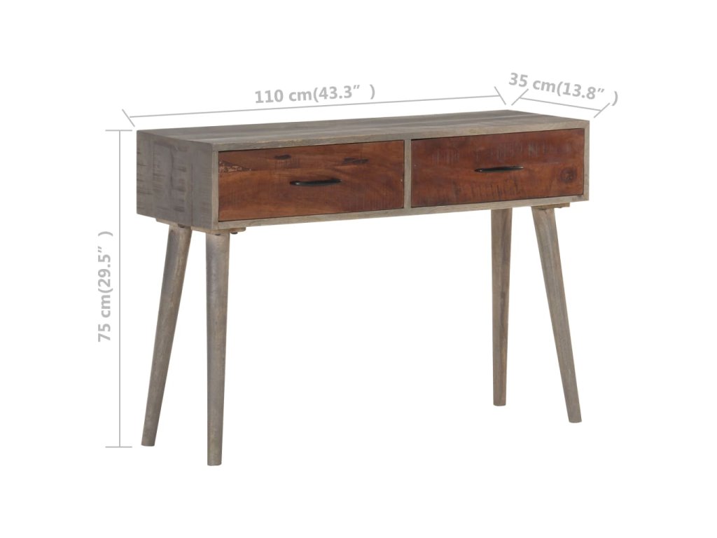 Tento predsieňový stolík je vyrobený z masívneho mangovníkového dreva, tropického tvrdého dreva. Unesie aj vyššiu hmotnosť, ale odoláva aj opotrebovaniu časom. Vďaka vynikajúcemu remeselnému spracovaniu a krásnej štruktúre dreva je každý kus trochu iný od ostatných. Tento príručný stolík má 2 zásuvky, ktoré poskytujú dostatok úložného priestoru pre malé predmety, ako sú kľúče, poznámkové bloky, perá a iné drobnosti. Okrem toho pomáha udržiavať poriadok vo vašej izbe. Pevná doska je ako stvorená na vystavenie ozdobných predmetov, rámikov s fotkami alebo kvetov v kvetináči.