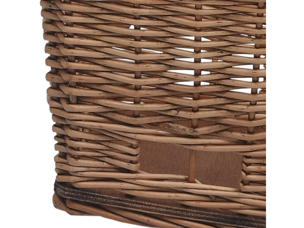 Kôš je vyrobený z prírodného vŕbového prútia, vďaka čomu je odolný voči roztrhnutiu a bude vám slúžiť naozaj dlho, nech už si ho vaši chlpatí kamaráti škrabú, koľko chcú. Prírodný drevený materiál neobsahuje žiadne chemikálie. Robustný uzamykací mechanizmus a kryt z masívneho železa udrží potraviny alebo domácich miláčikov počas vašich výletov na svojom mieste. Košík na zadný nosič má v spodnej časti háčiky, ktoré umožňujú rýchle a jednoduché upevnenie aj odstránenie.