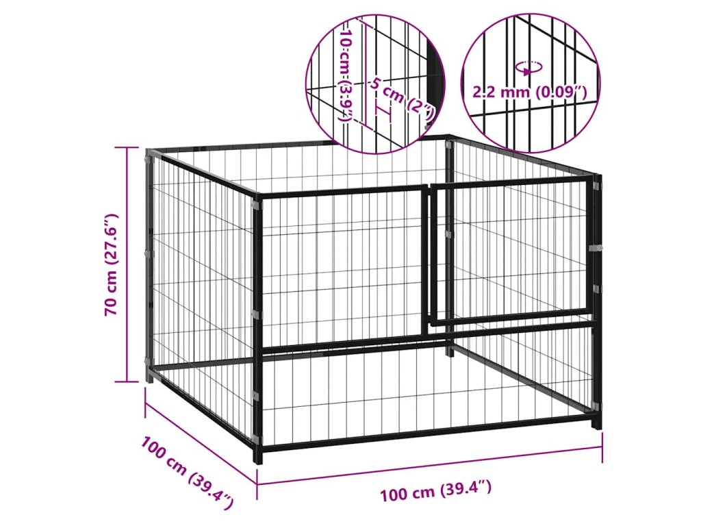 Veľká klietka pre psa poskytuje dostatok priestoru na cvičenie. Stena z oceľového pletiva pomáha predchádzať neočakávaným nehodám a zároveň umožňuje vetranie. Vďaka robustnej oceľovej konštrukcii je tento výbeh pre domáce zvieratá odolný a vyrobený tak, aby vydržal čo najdlhšie. Dvere majú navyše uzamykateľnú západku, ktorá zaisťuje dodatočnú bezpečnosť a ochranu vašich psov.