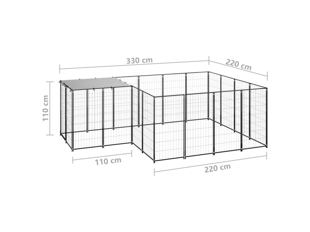 Veľká klietka pre psov poskytuje dostatok priestoru na cvičenie, zatiaľ čo oceľová drôtená stena pomáha predchádzať neočakávaným nehodám a zároveň umožňuje vetranie. Vďaka pevnej oceľovej konštrukcii je táto klietka pre domáce zvieratá odolná a vyrobená tak, aby vydržala. Dodáva sa s polyetylénovou strechou, ktorá je odolná voči vode a UV žiareniu. Dvere majú navyše uzamykateľnú západku, ktorá zaisťuje mimoriadnu bezpečnosť a ochranu vašich psov.