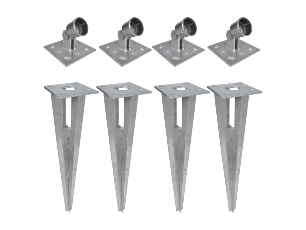 Toto balenie pozostávajúce zo 4 plotových vzpier a 4 kotviacich hrotov je určené na podopieranie stĺpikov, aby ste lepšie ukotvili plot.