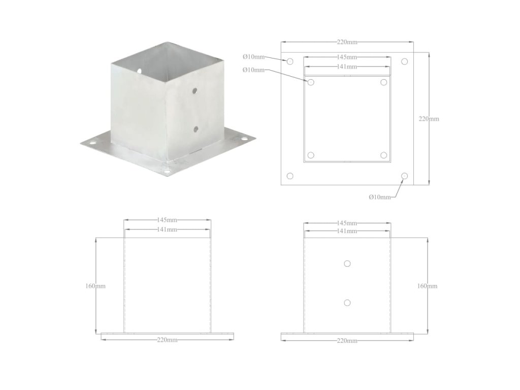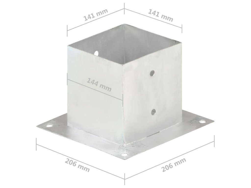 Štvorcové rúrky môžete teraz pripevniť k podlahe pomocou pevných základových dosiek na našich kotvách na stĺpiky. Tieto kotvy na stĺpiky sú navrhnuté pre použitie so štvorcovými rúrkami s priemerom 141 mm.