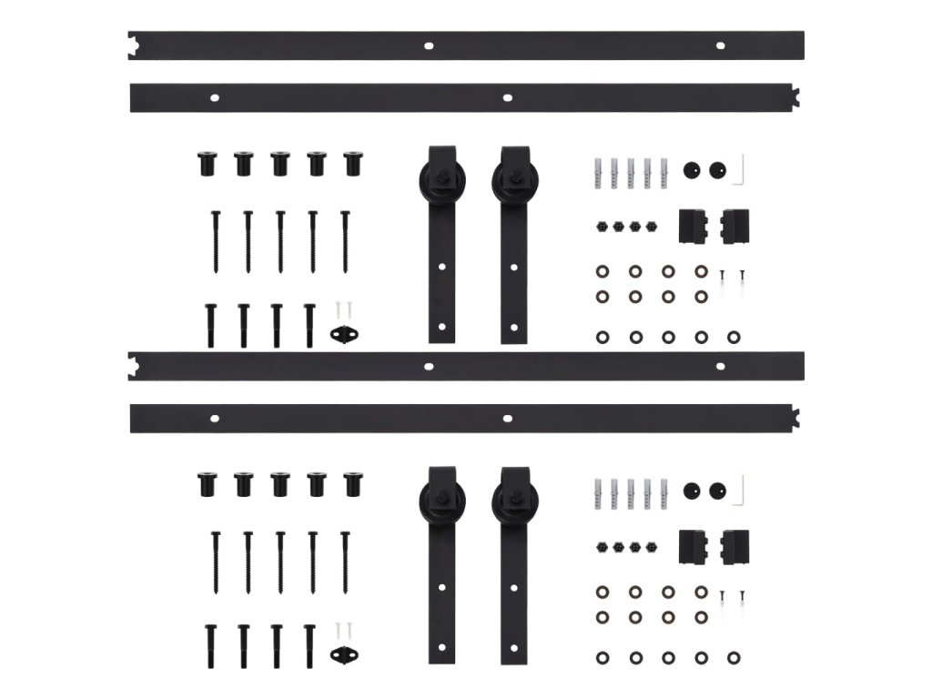 V balení sa nachádzajú 4 posuvné koľajnice, 4 valčeky, 4 zarážky na dvere, 2 podlahové lišty, 4 bloky proti vykoľajeniu, 10 upevňovacích svoriek a ďalšie potrebné náradie. Poznámka: Dvere nie sú súčasťou balenia.