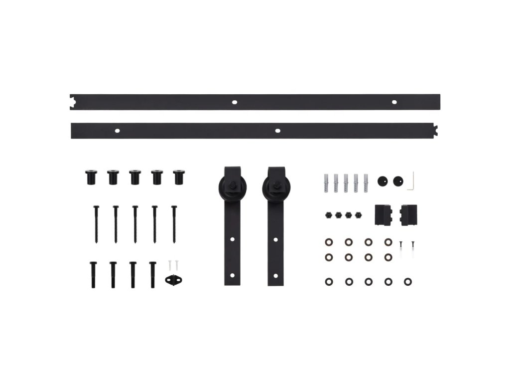 V balení sa nachádzajú 2 posuvné koľajnice, 2 valčeky, 2 zarážky na dvere, 1 podlahová lišta, 2 bloky proti vykoľajeniu, 5 upevňovacích svoriek a ďalšie potrebné náradie. Poznámka: Dvere nie sú súčasťou balenia.