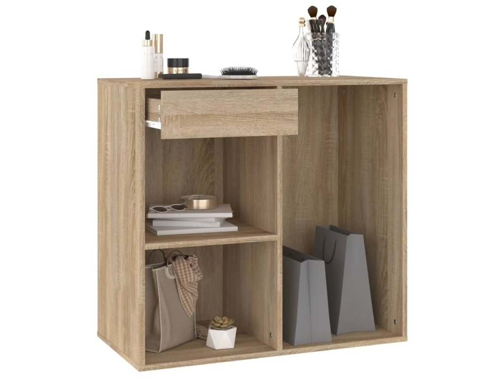 - Dostatok úložného priestoru: Kozmetická skrinka poskytuje priestranné úložné priestory so zásuvkou a priehradkami, ktoré sú ideálne na uloženie make-upu, doplnkov, tašiek a kozmetických potrieb.