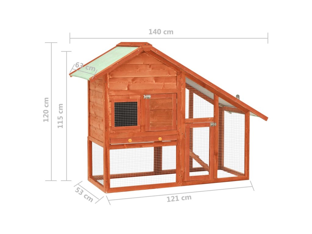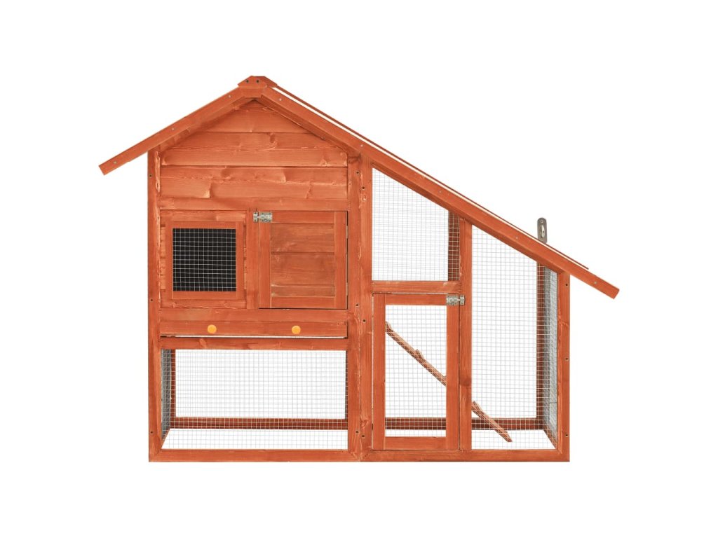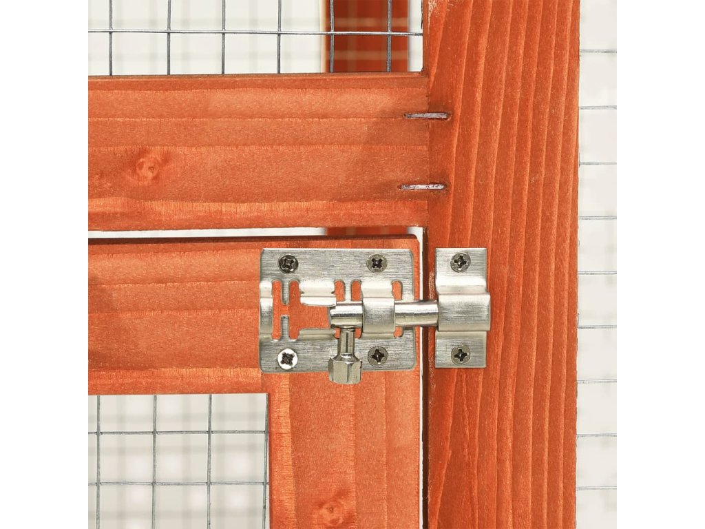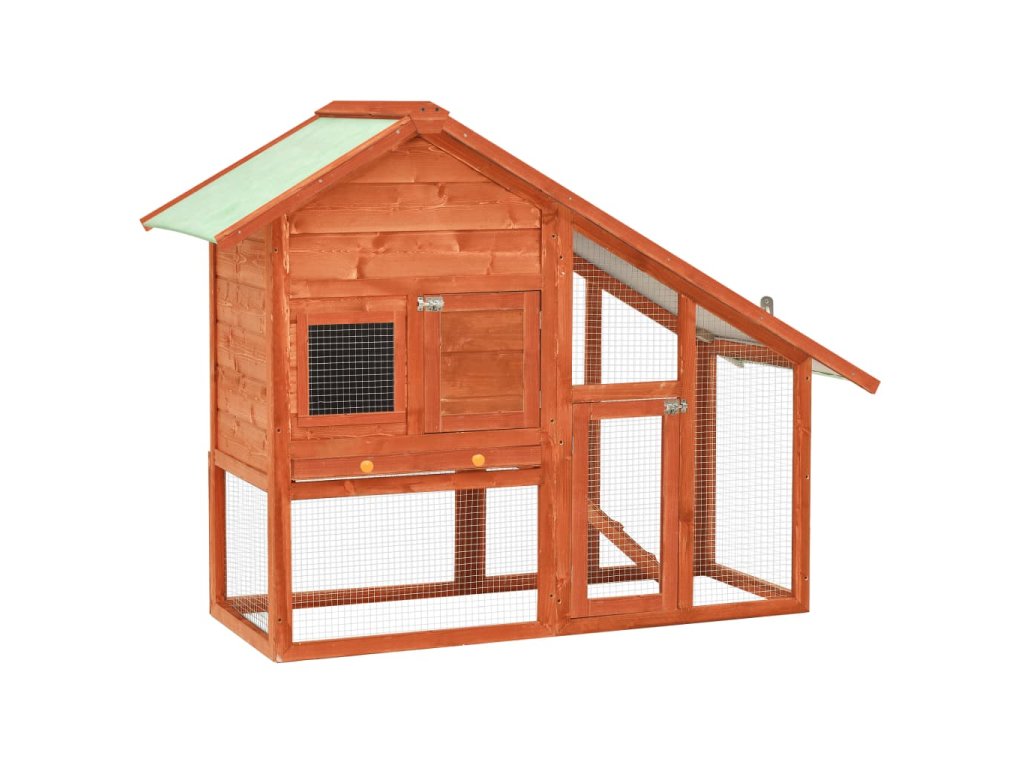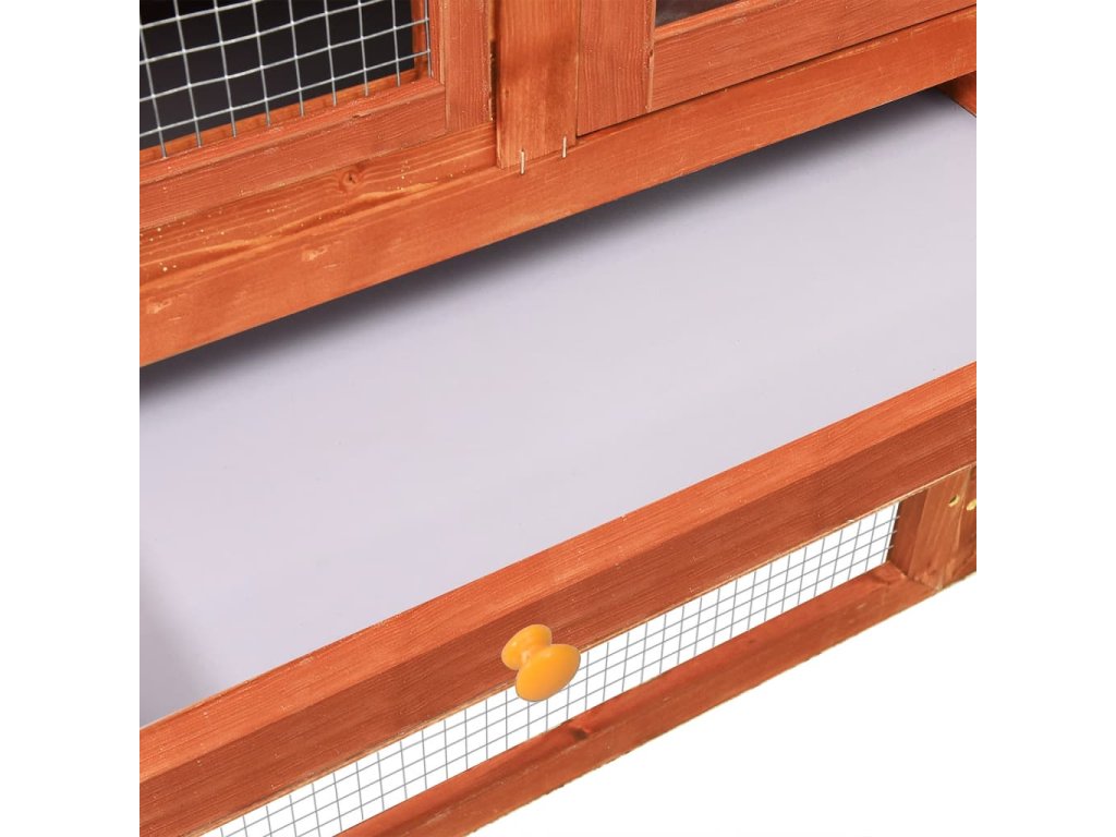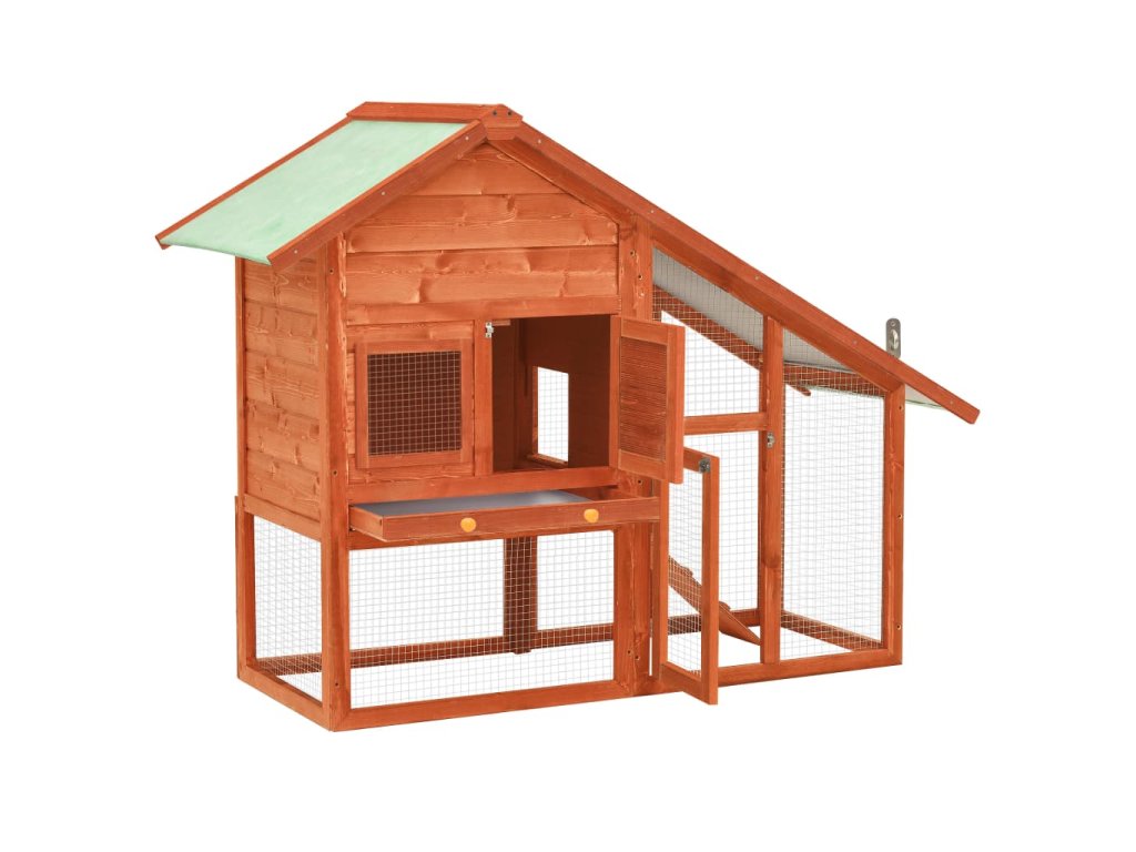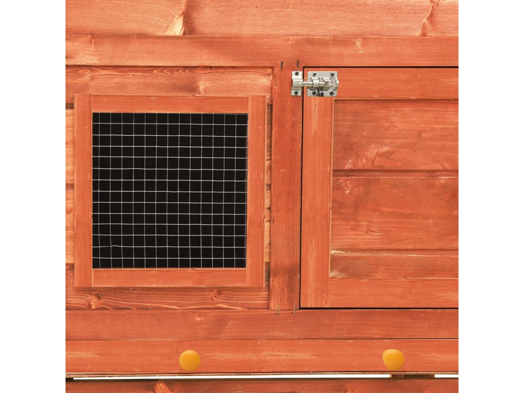 Táto králikáreň poskytuje vašim miláčikom dostatok priestoru na výcvik, zatiaľ čo pevný oceľový drôt pomáha predchádzať neželanému správaniu a nečakaným nehodám. Umožní vám sledovať zajacov a poskytne im dostatočný prístup čerstvého vzduchu. Králikáreň umožňuje prístup cez 2 dvierka. Je vyrobená z masívneho borovicového rámu, takže je stabilná a trvácna. Sklopná zelená strecha je tiež pokrytá vodeodolnou látkou, ktorá bráni prenikaniu dažďu. Na ľahké čistenie králikárne slúži podnos z kovového plechu. Králikáreň ponúka perfektný priestor na spanie. Rampa pre ľahké presúvanie sa vedie zo spodnej časti do horného poschodia a výsuvný podnos uľahčuje čistenie.