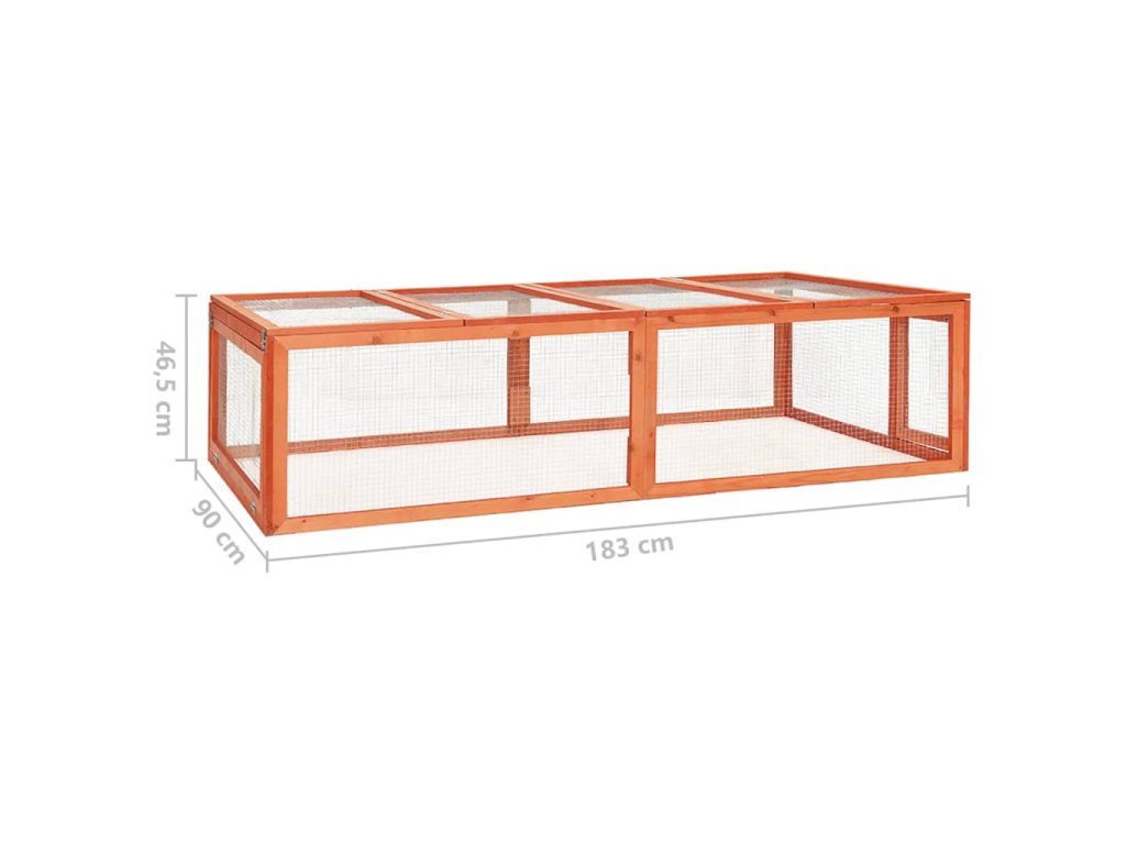 Vonkajší výbeh pre králiky pozostáva z pevného rámu z jedľového dreva a konštrukcie z oceľového drôtu, ktorú možno rýchlo a jednoducho postaviť v záhrade. Poskytne zvieratkám dostatok čerstvého vzduchu a slnečného svetla, ktoré sa veľmi približuje prirodzenému spôsobu života. Kryt výbehu sa skladá zo štyroch prvkov, pričom ľavý a pravý prvok sa dá otvoriť, aby ste mohli pohodlne dosiahnuť dovnútra. Zároveň zabraňuje vyskakovaniu vašich králikov a slúži ako ochrana pred predátormi. Táto búdka pre malé zvieratá poskytne dostatočnú voľnosť pohybu, aby bola zabezpečená pohoda zvierat.