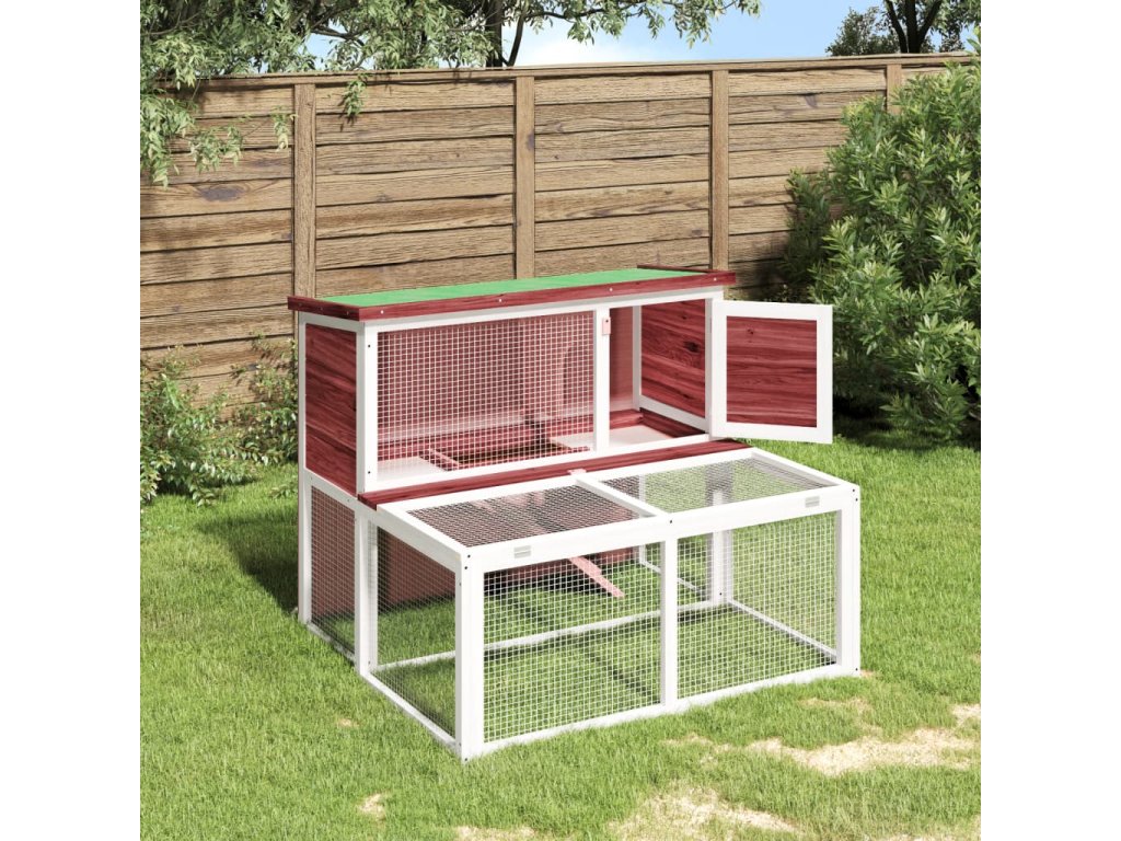 - Pevná konštrukcia: Táto vonkajšia králikáreň je vyrobená z masívneho borovicového dreva, čo prispieva k pevnej konštrukcii. Borovicové drevo je krásny prírodný materiál. Má rovnú kresbu a nachádzajú sa na ňom hrče, ktoré tomuto materiálu dodávajú charakteristický rustikálny vzhľad. Vďaka vode odolnej streche je klietka pre králiky ideálna na vonkajšie použitie.