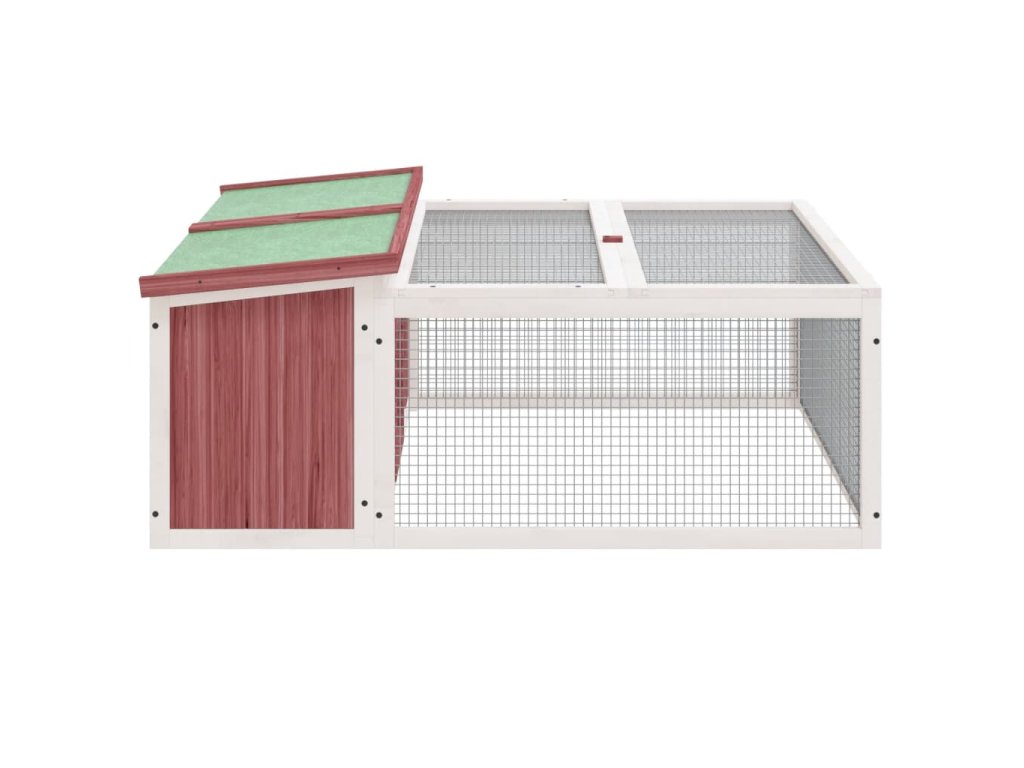 - Pevná konštrukcia: Táto vonkajšia králikáreň je vyrobená z masívneho borovicového dreva, čo prispieva k pevnej konštrukcii. Borovicové drevo je krásny prírodný materiál. Má rovnú kresbu a nachádzajú sa na ňom hrče, ktoré tomuto materiálu dodávajú charakteristický rustikálny vzhľad. Vďaka vode odolnej streche je klietka pre králiky ideálna na vonkajšie použitie.