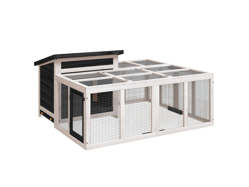 Táto králikáreň s priestranným centrom aktivít a priestorom na spanie ponúka bezpečné a pohodlné miesto pre vašich chlpatých priateľov, ako sú zajačiky, morčatá, malé kačice a iné malé domáce zvieratá na hranie a odpočinok.